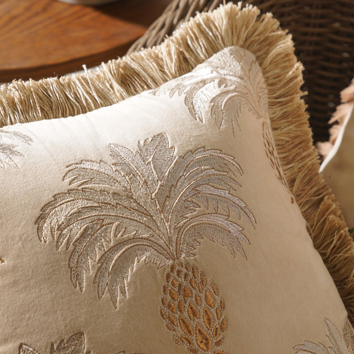 Add Beige Ananas Embroidered Cushion Cover to the cart