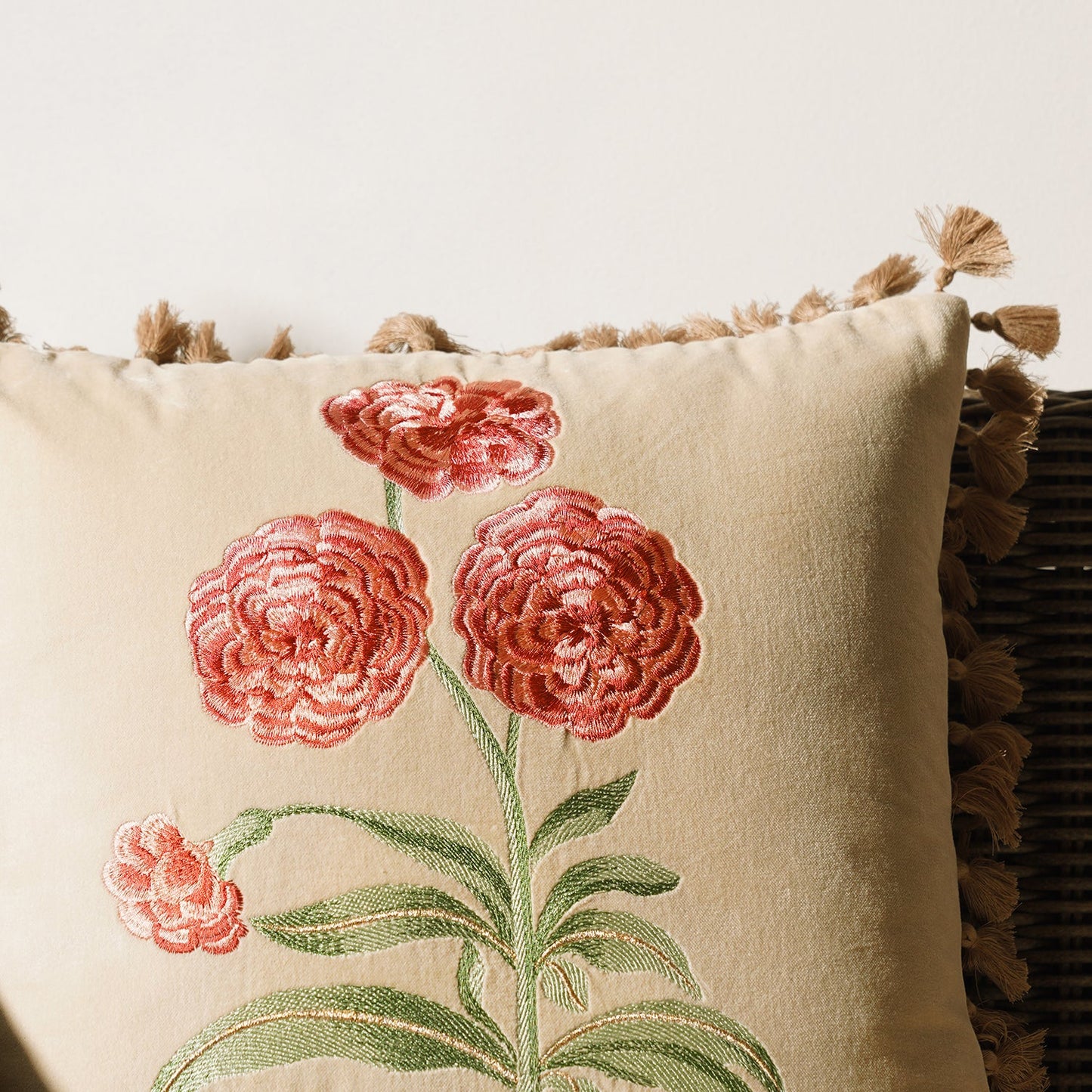 Add Beige Rose Embroidered Cushion Cover to the cart