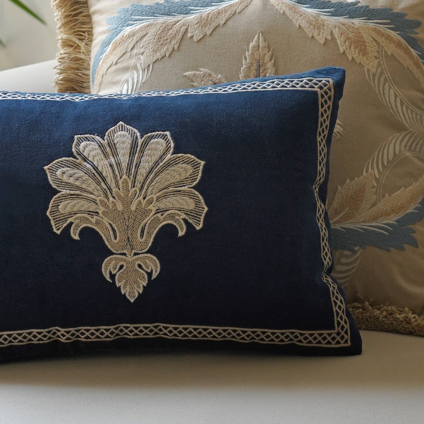 Add Navy Blue Embroidered Rectangle Cushion Cover to the cart