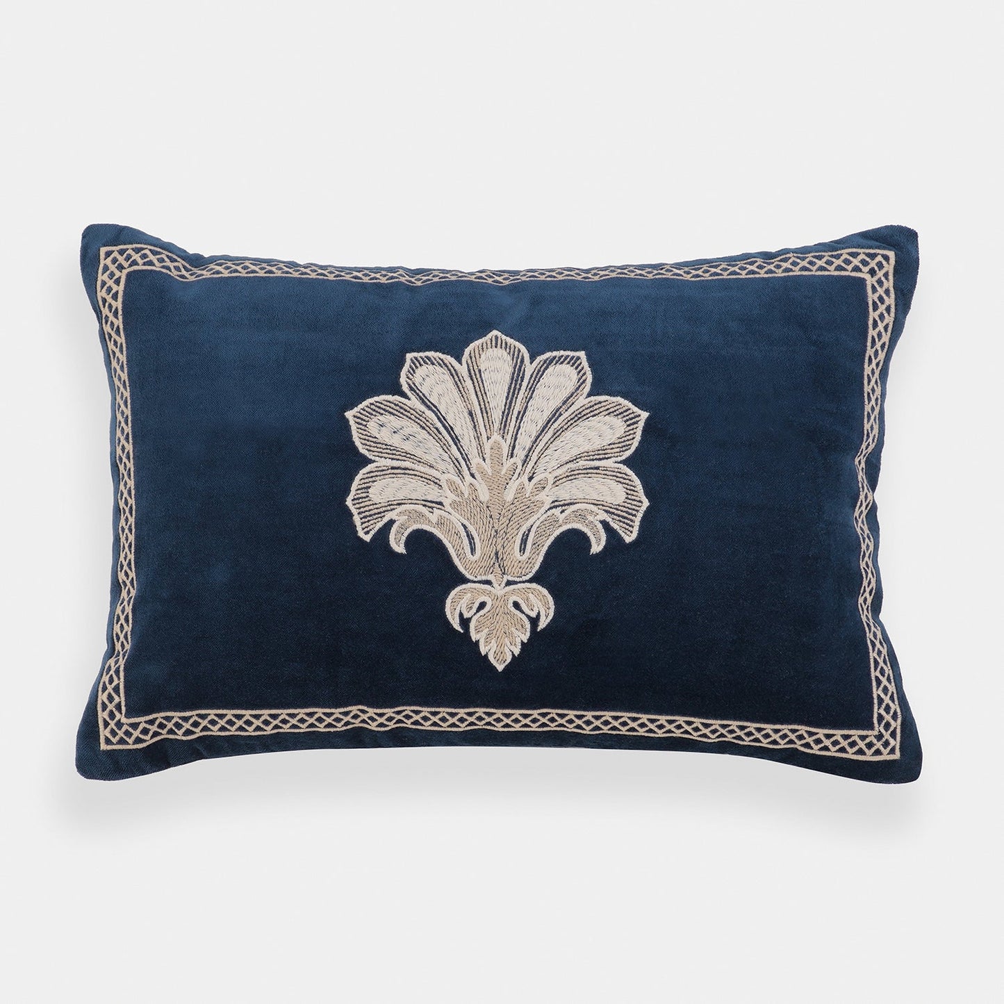 Navy Blue Embroidered Rectangle Cushion Cover