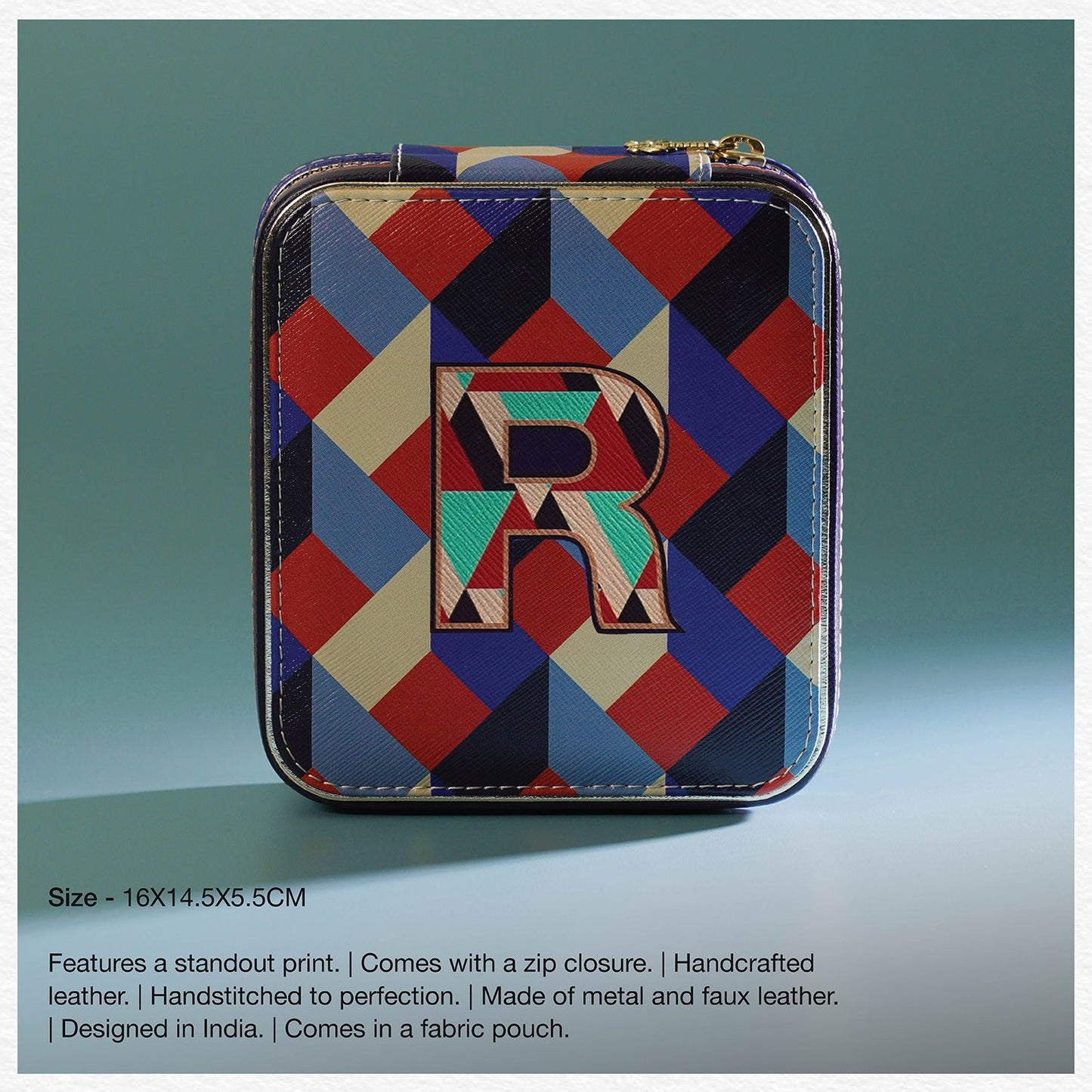 Blue & Peach O Faux Leather Jewellery Box