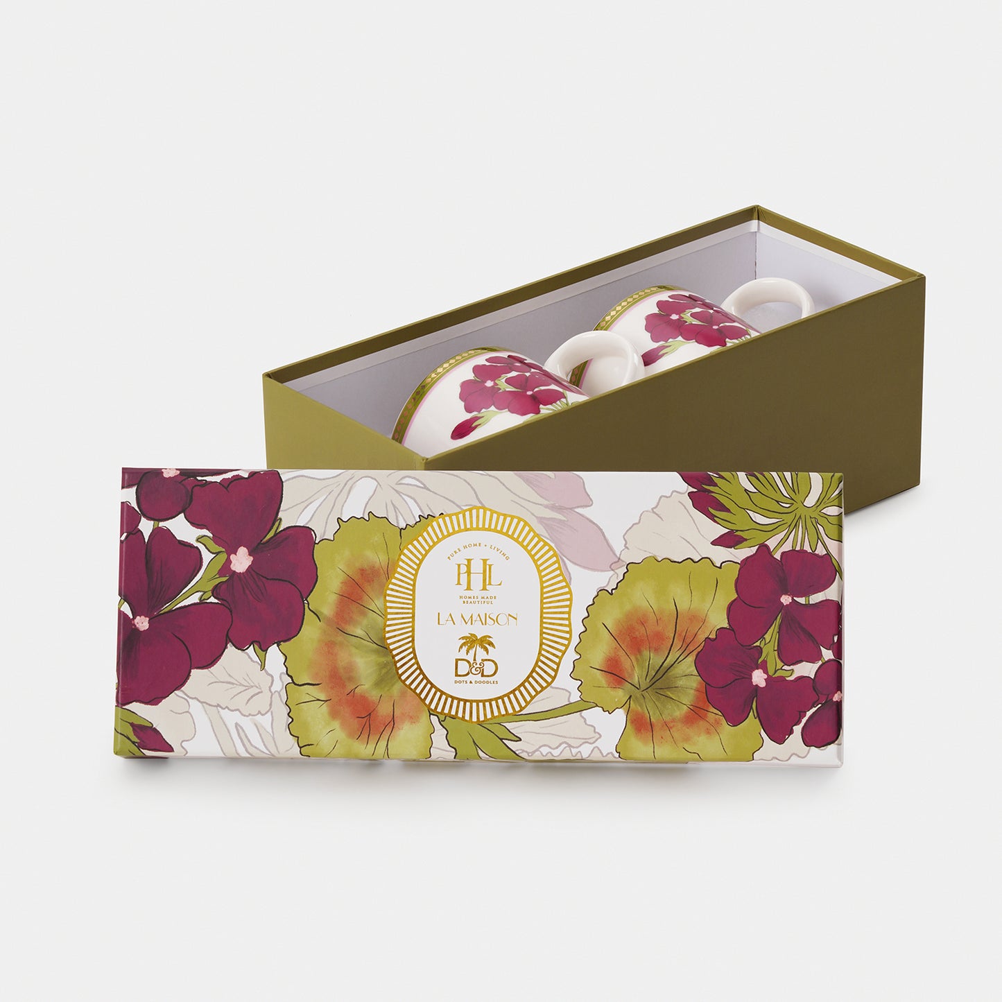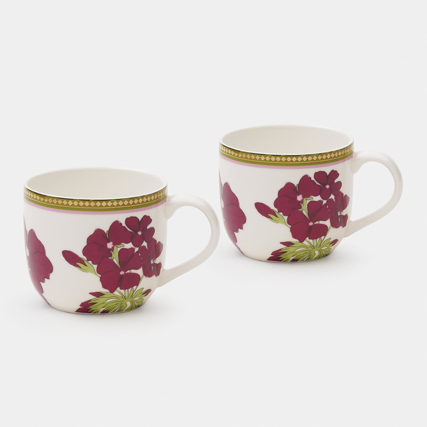 Bold red florals and olive green leaves come together in this striking set of coffee mugs. Inspired by the timeless botanical motif. It adds warmth and character to your tea time.