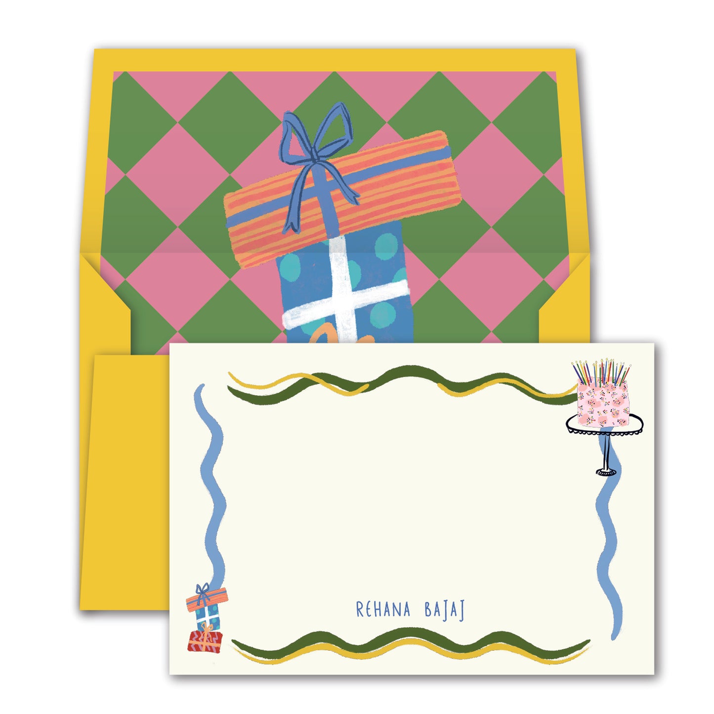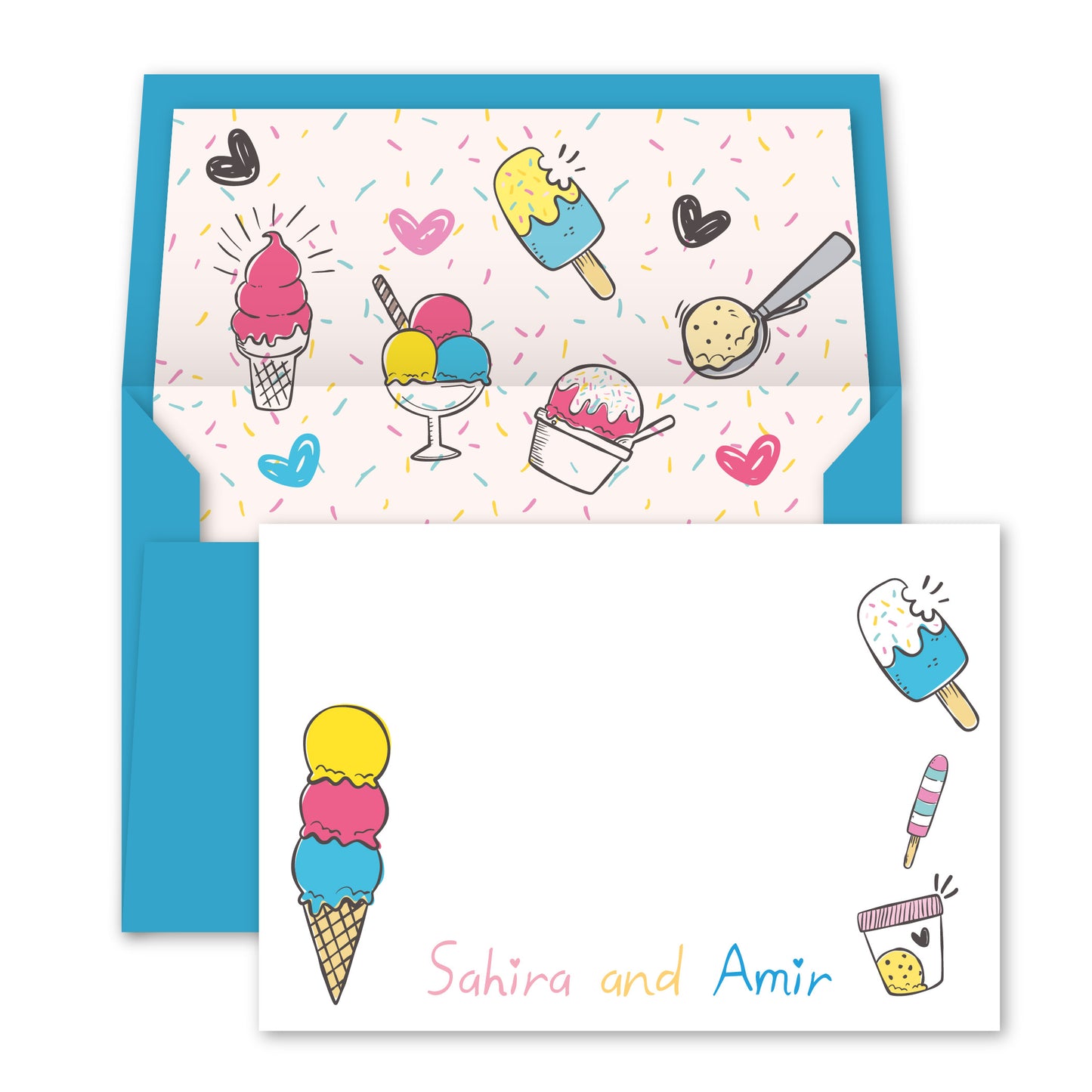 A set of 20, 40 or 100 notecards with envelopes. Select Design to start customising