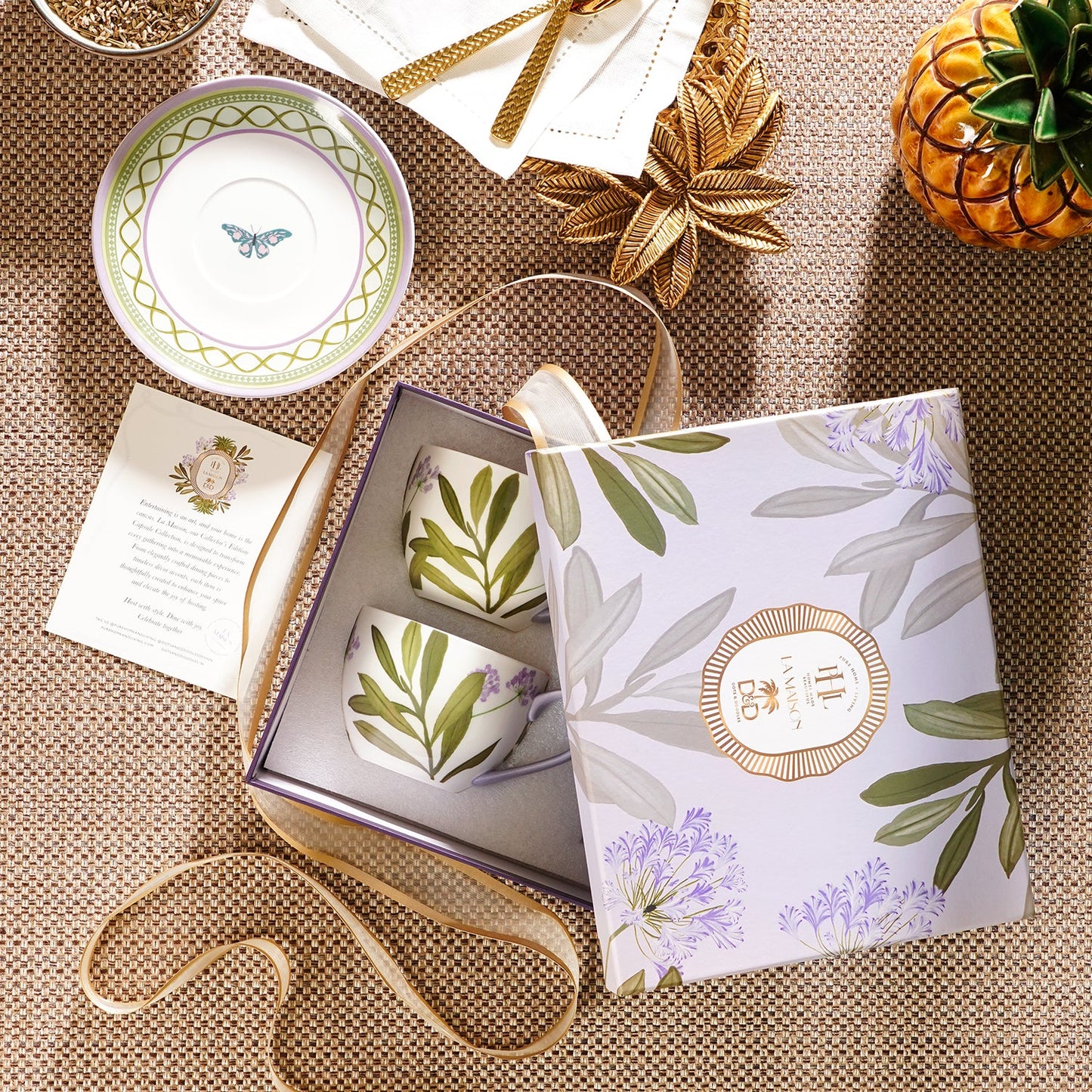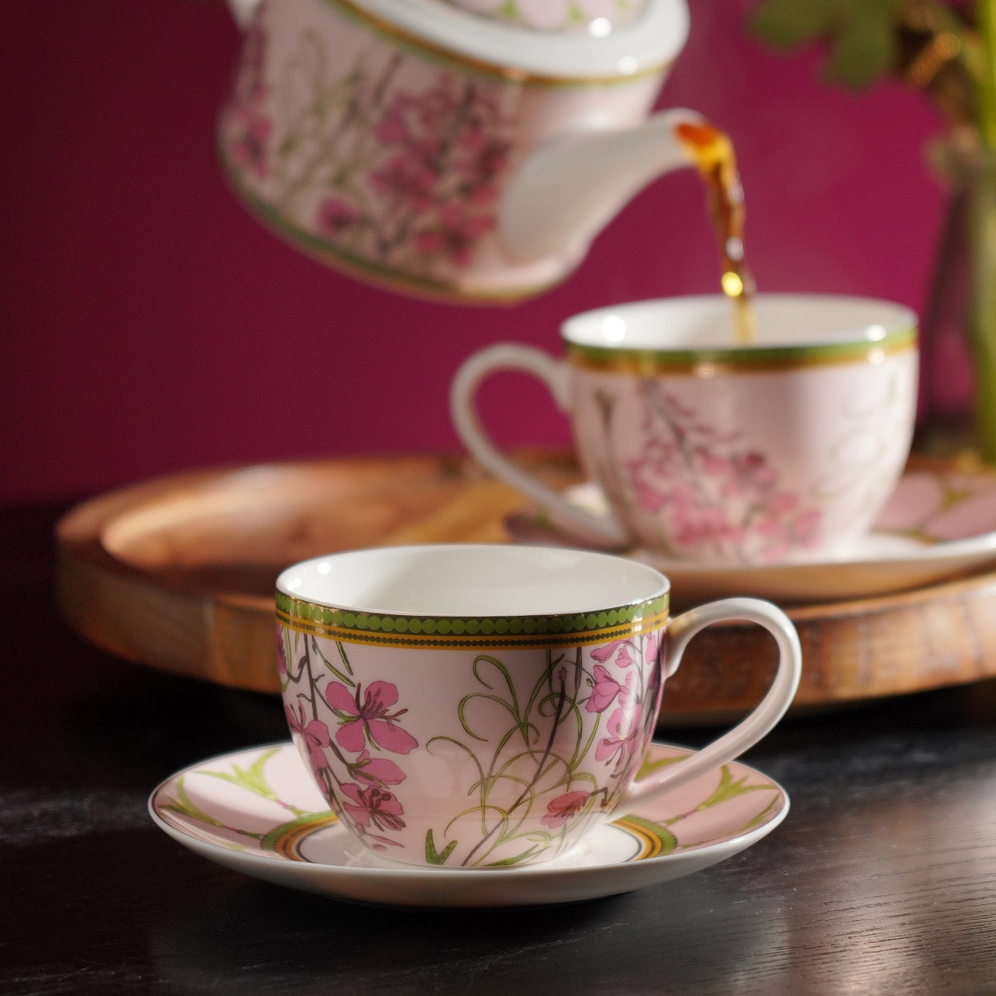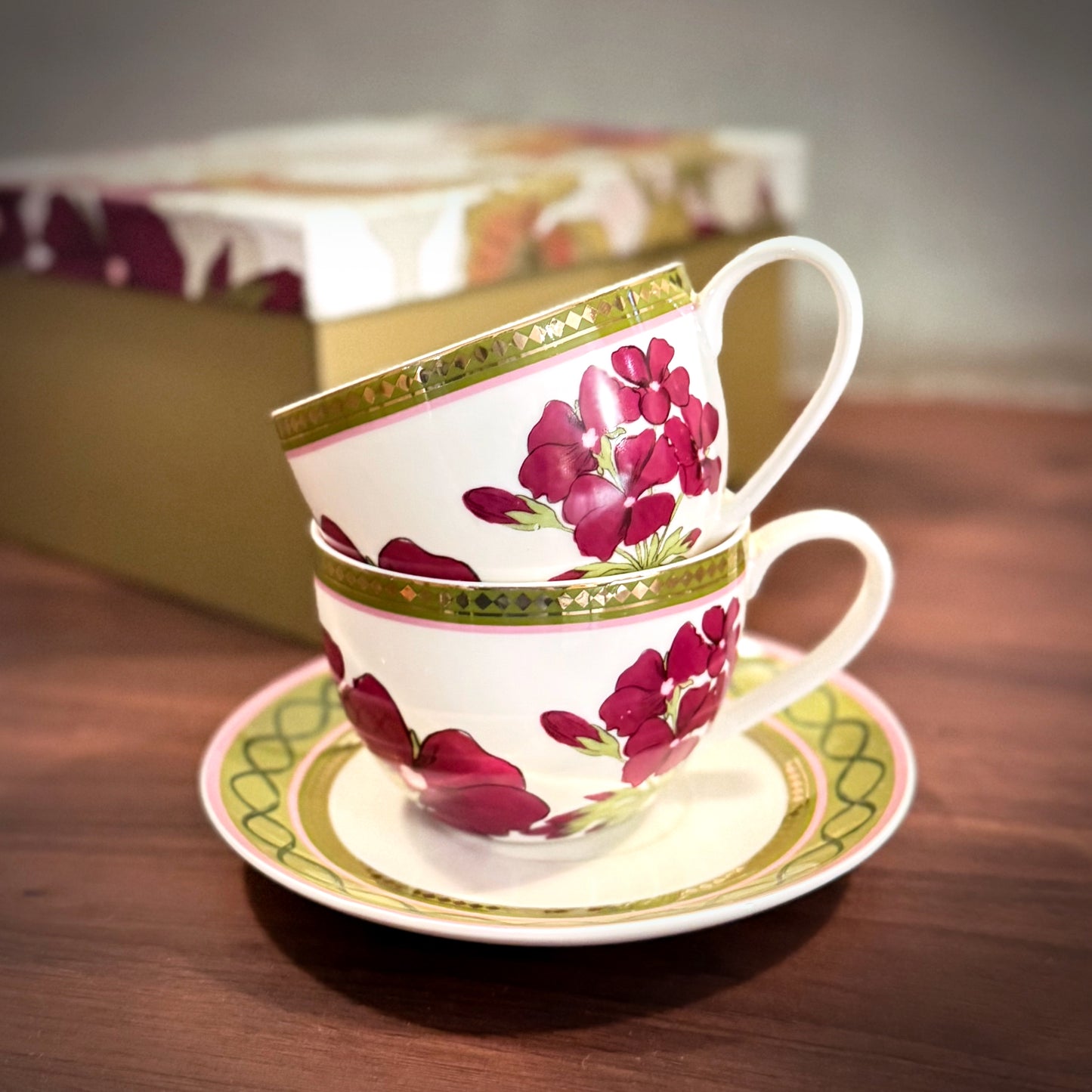 Set of 2 Rosabay Print Tea Cups & Saucers
