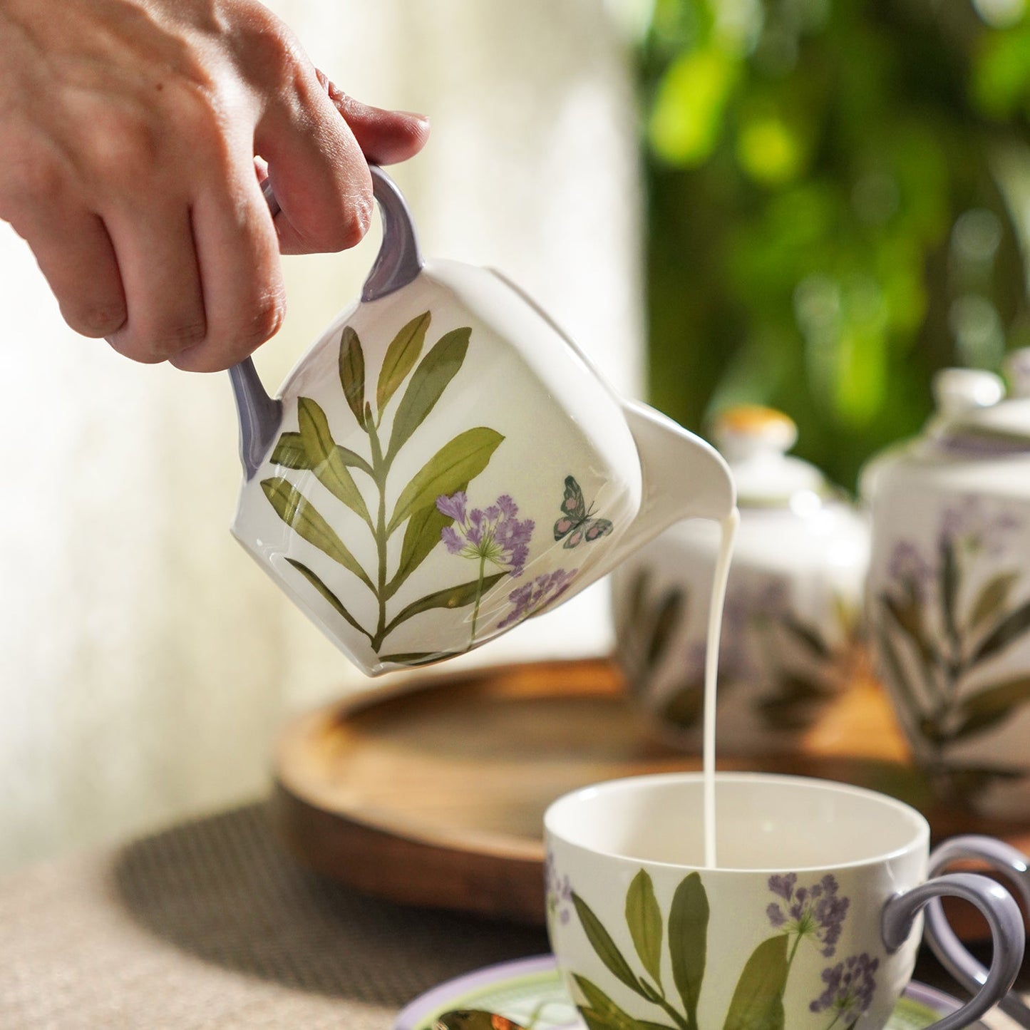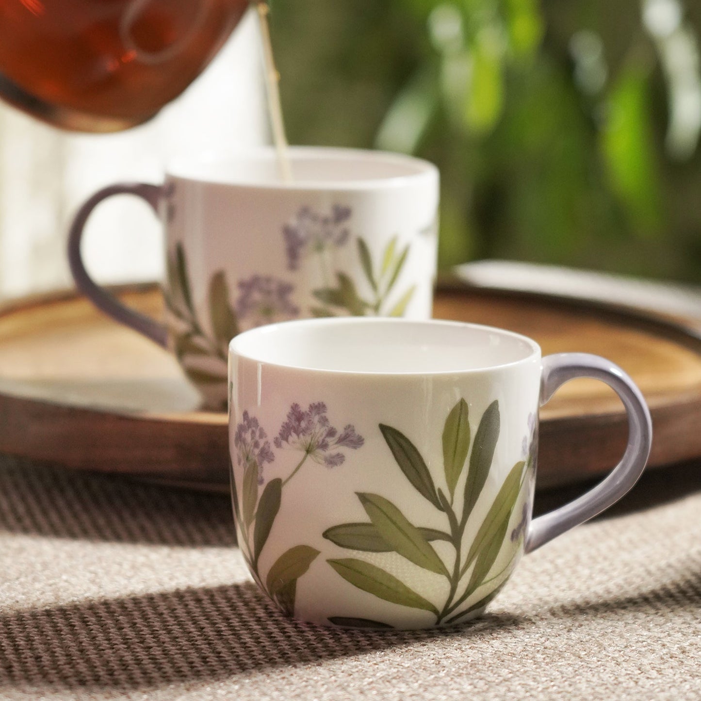 Set of 2 Purple Prined Bone China Coffee Mugs