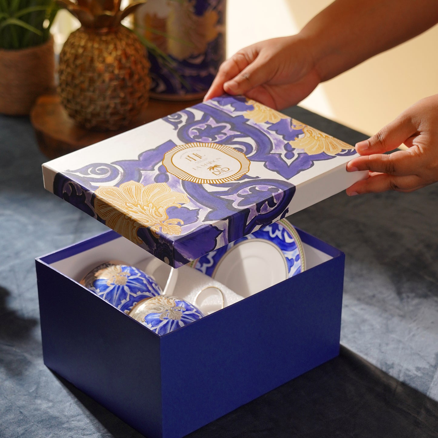Set of 2 Blue Amalfi Print Tea Cups & Saucers