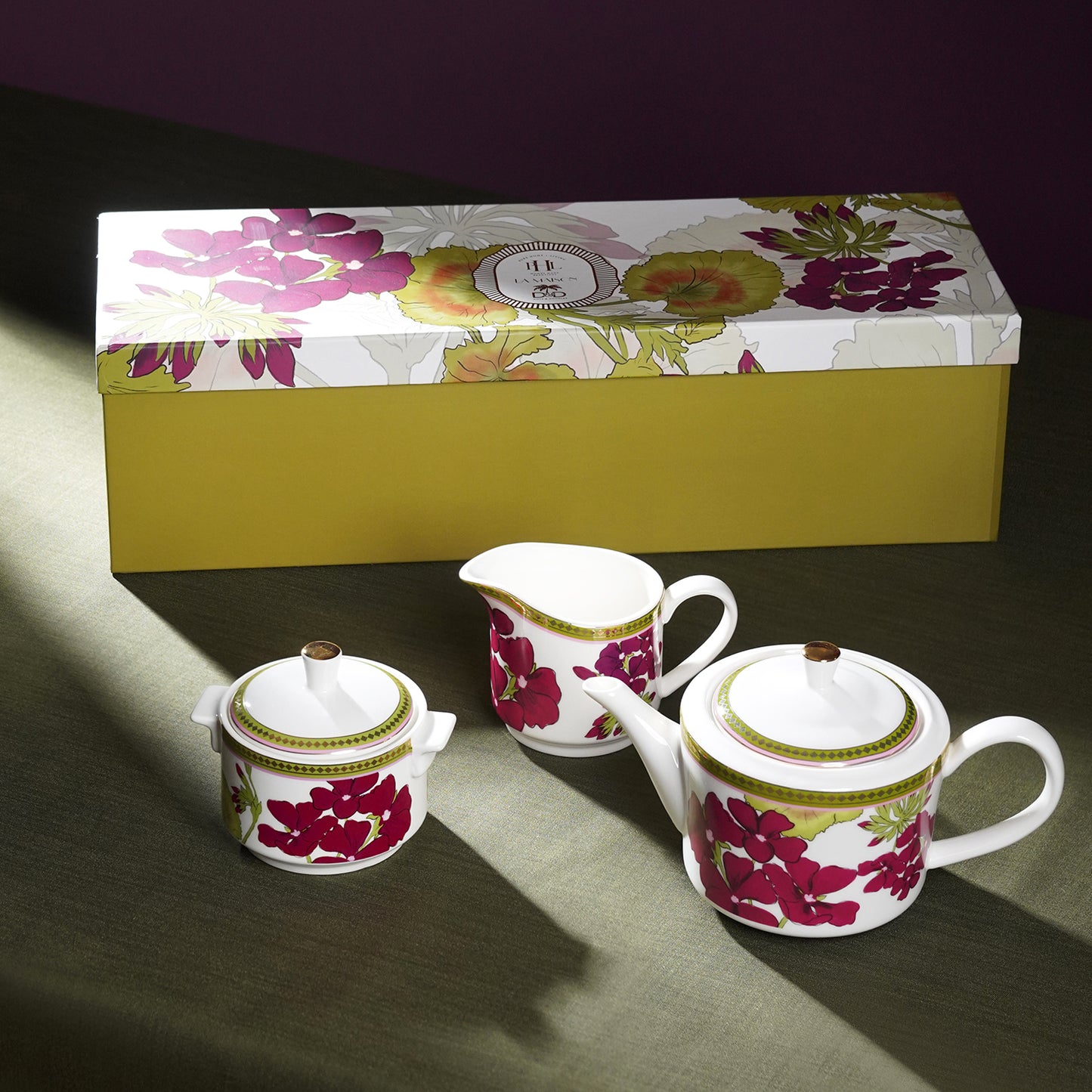 Add Set of 3 Red & Green Rosabay Print Tea Set to the cart