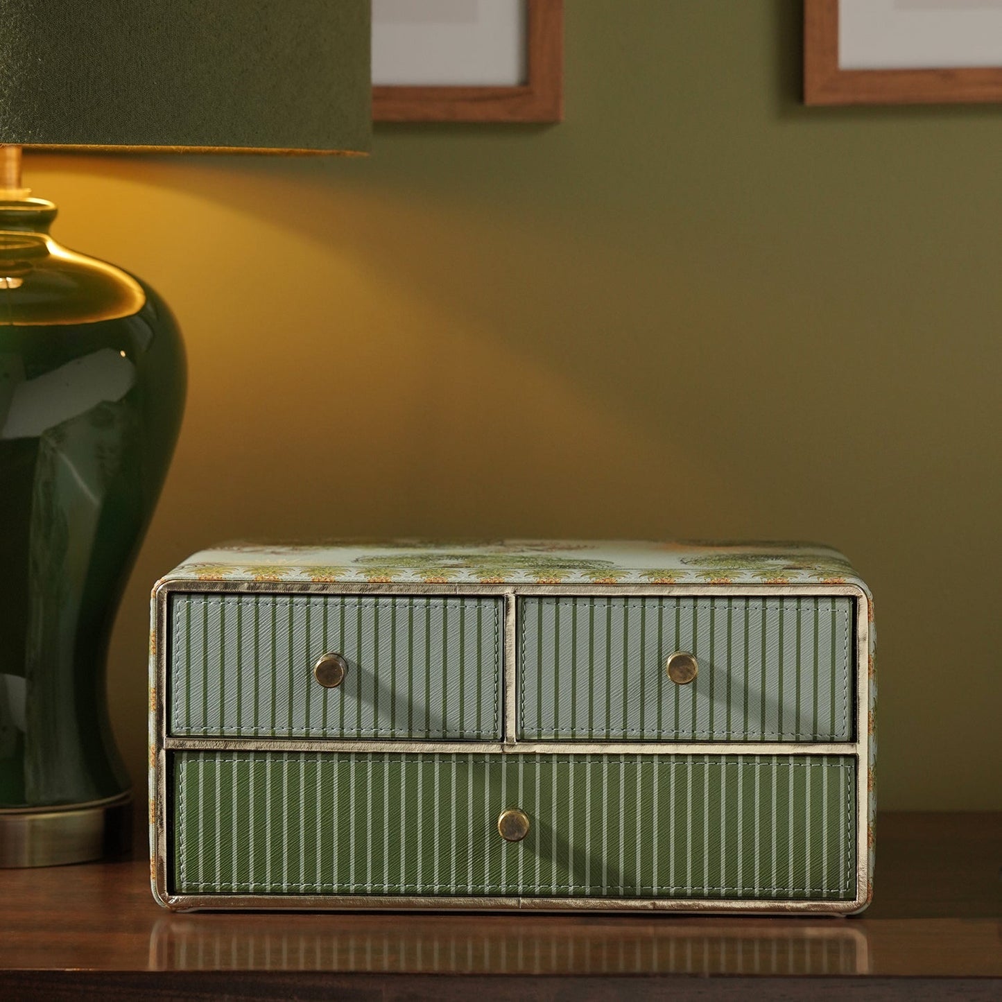 Green Como Printed Faux Leather Drawer Organizer