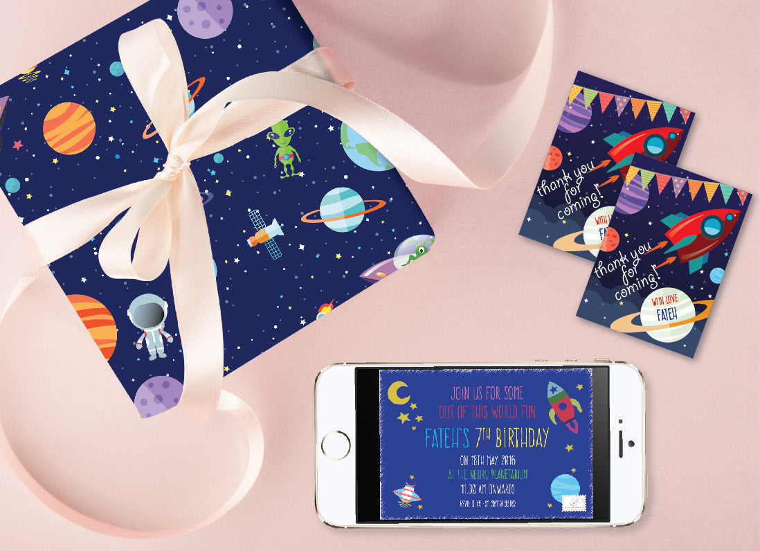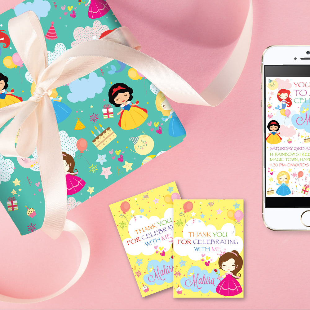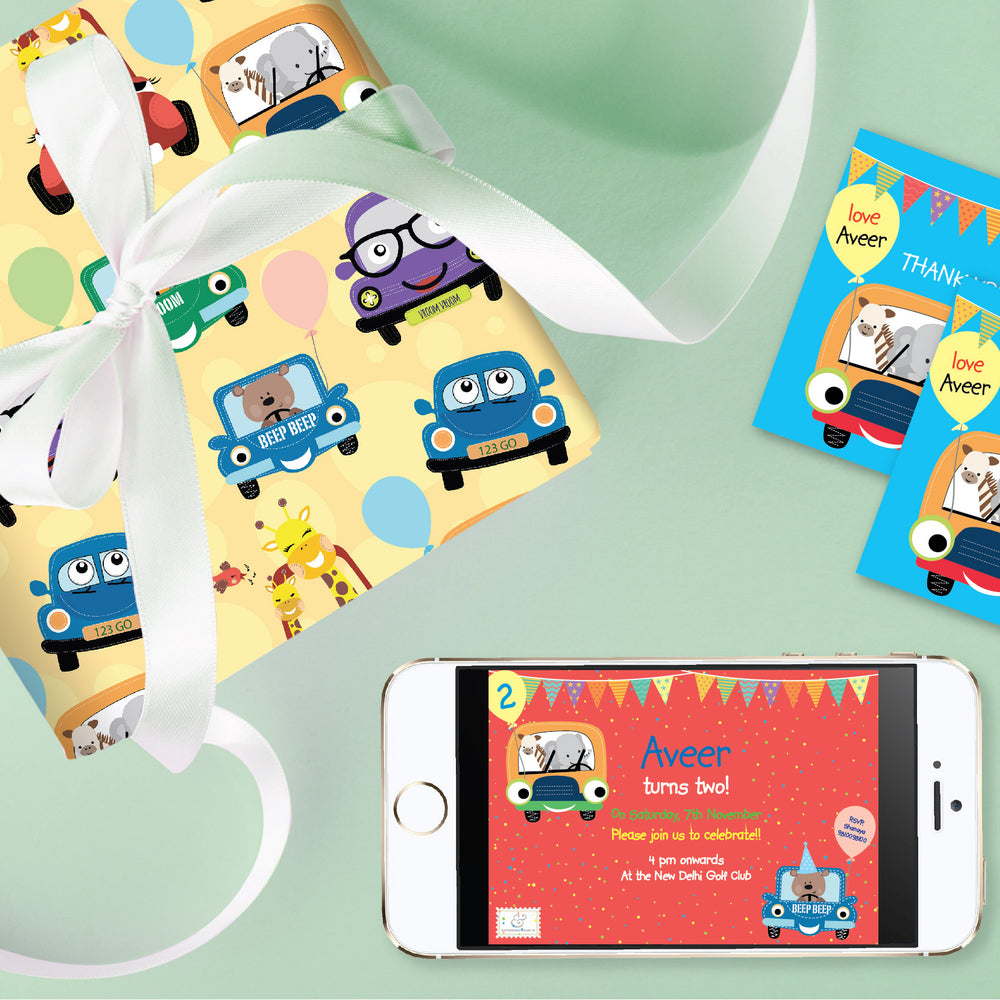 We have bundled an E-invite, wrapping paper roll of 20 sheets and 40 return gift tags! Let us do all the heavy lifting while you plan a fabulous party!