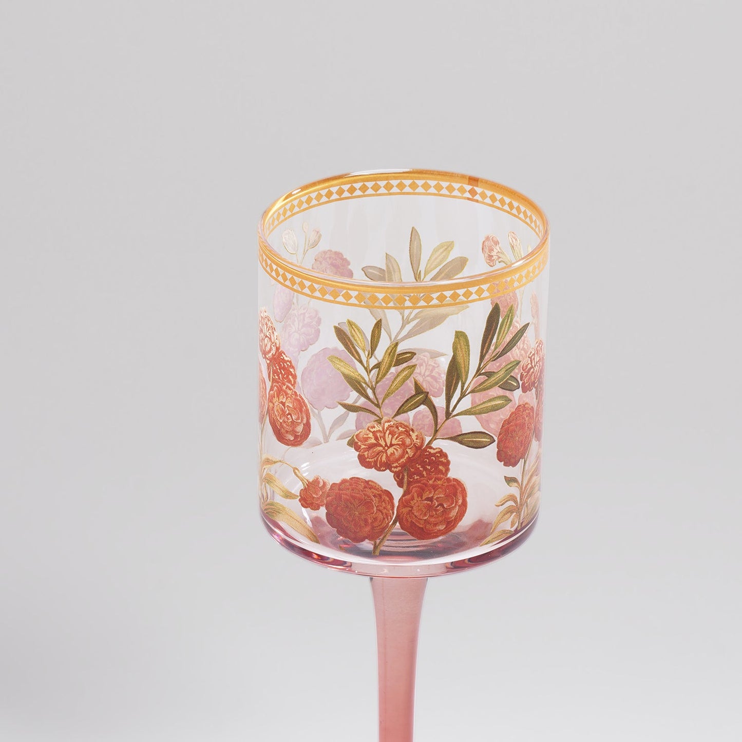 Old Rose & Gold Glass Stem Candle Holder