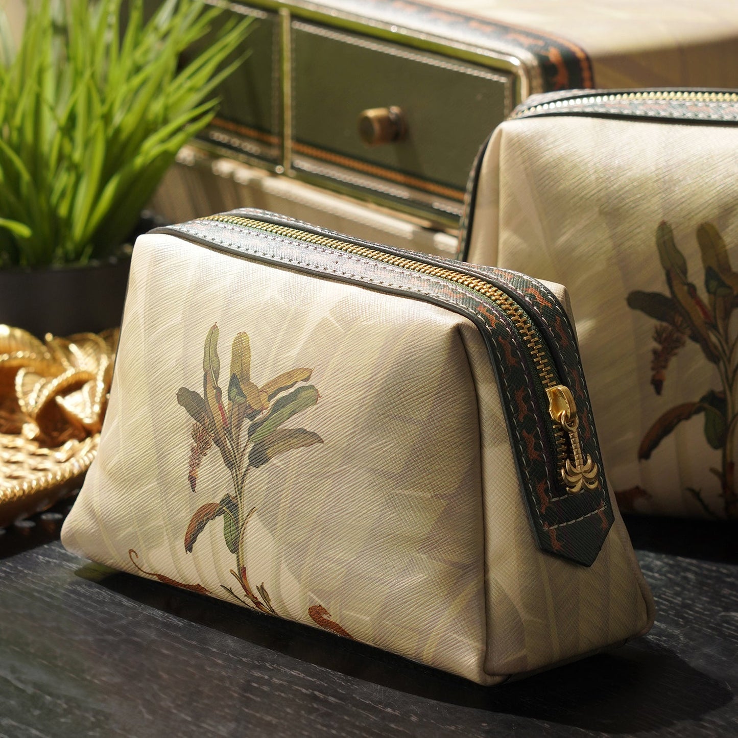 Green Como Printed Faux Leather Vanity Pouch - Small