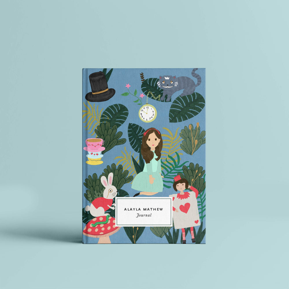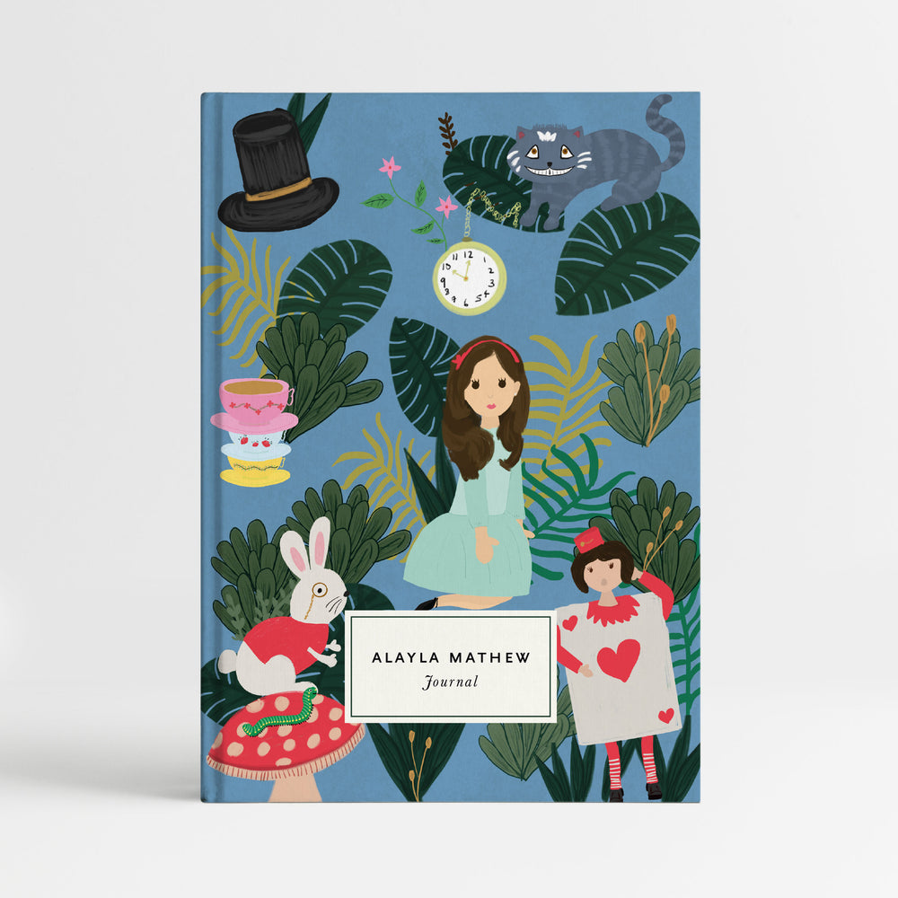 For your big ideas, inspirations, or to-do lists. Your very own personalised hardcover Alice in Wonderland journal. Custom illustrated by MissKCanvas. Personalise the cover with your name and make it your own
