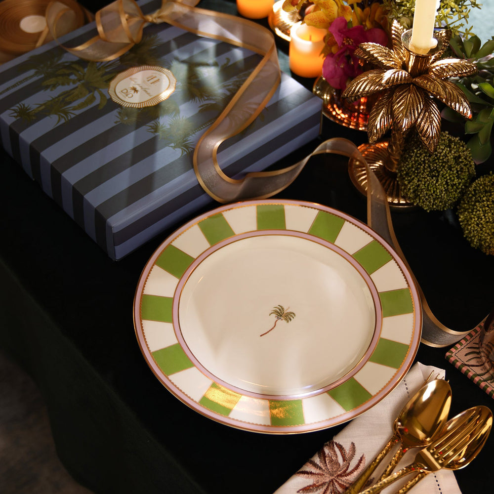 Set of 2 Pink & Green Palmera Print Porcelain Dinner Plates