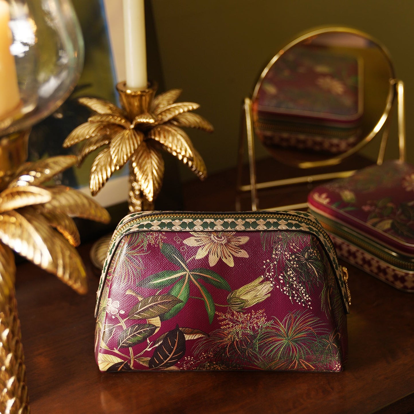 Green Como Printed Faux Leather Vanity Pouch - Large