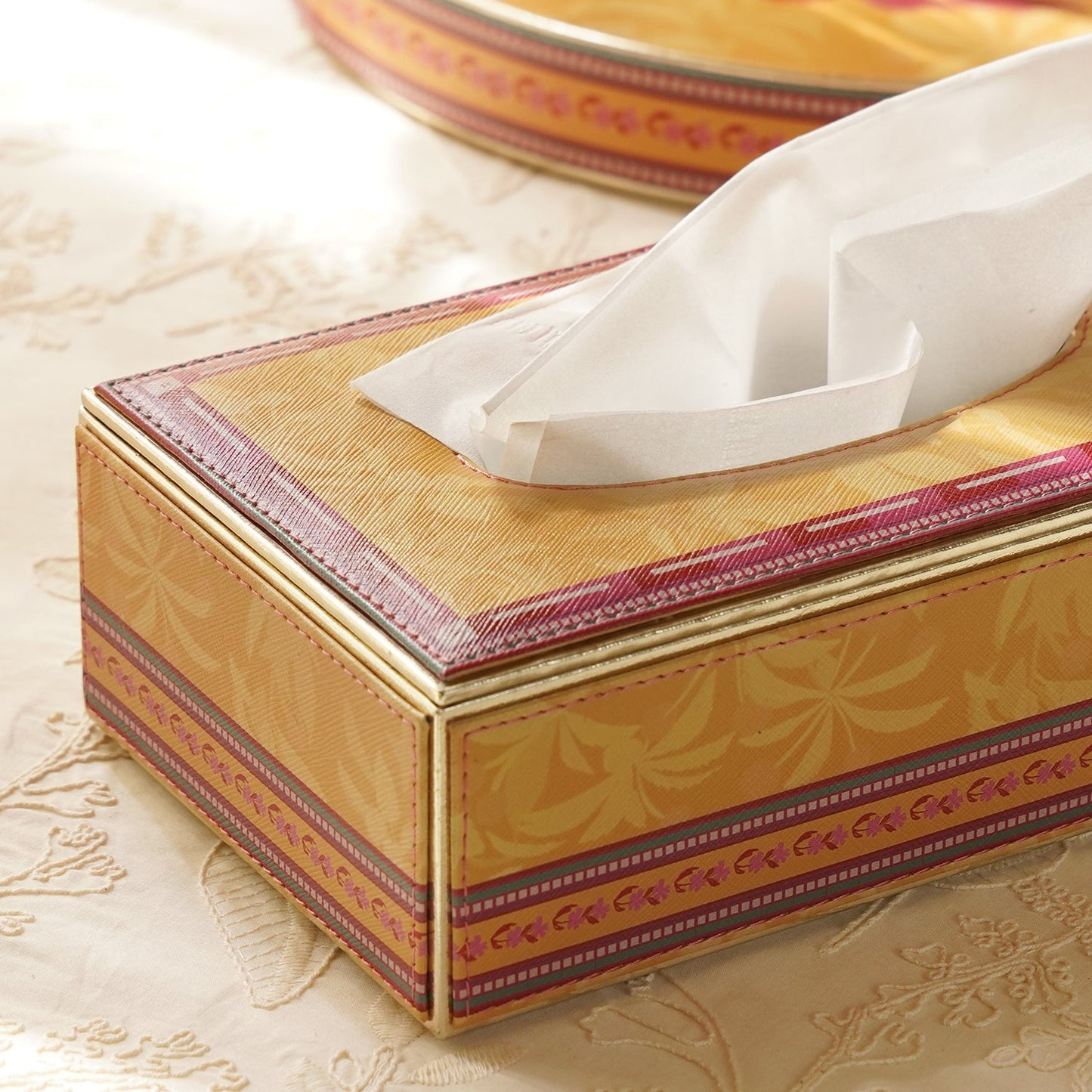 Yellow Printed Faux Leather Tissue Box