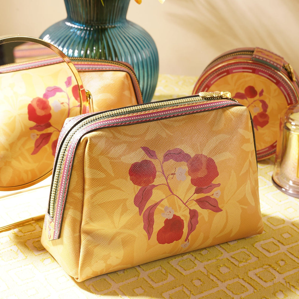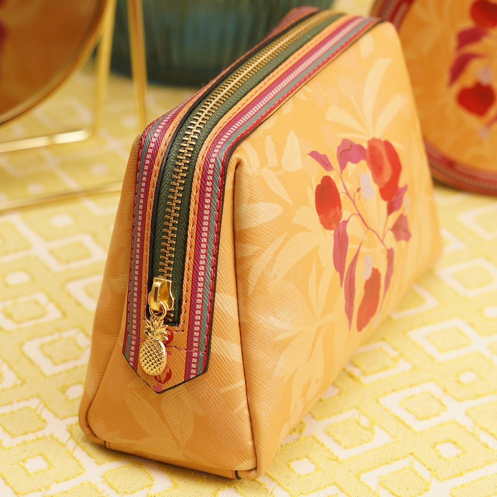 Yellow Printed Faux Leather Vanity Pouch - Large