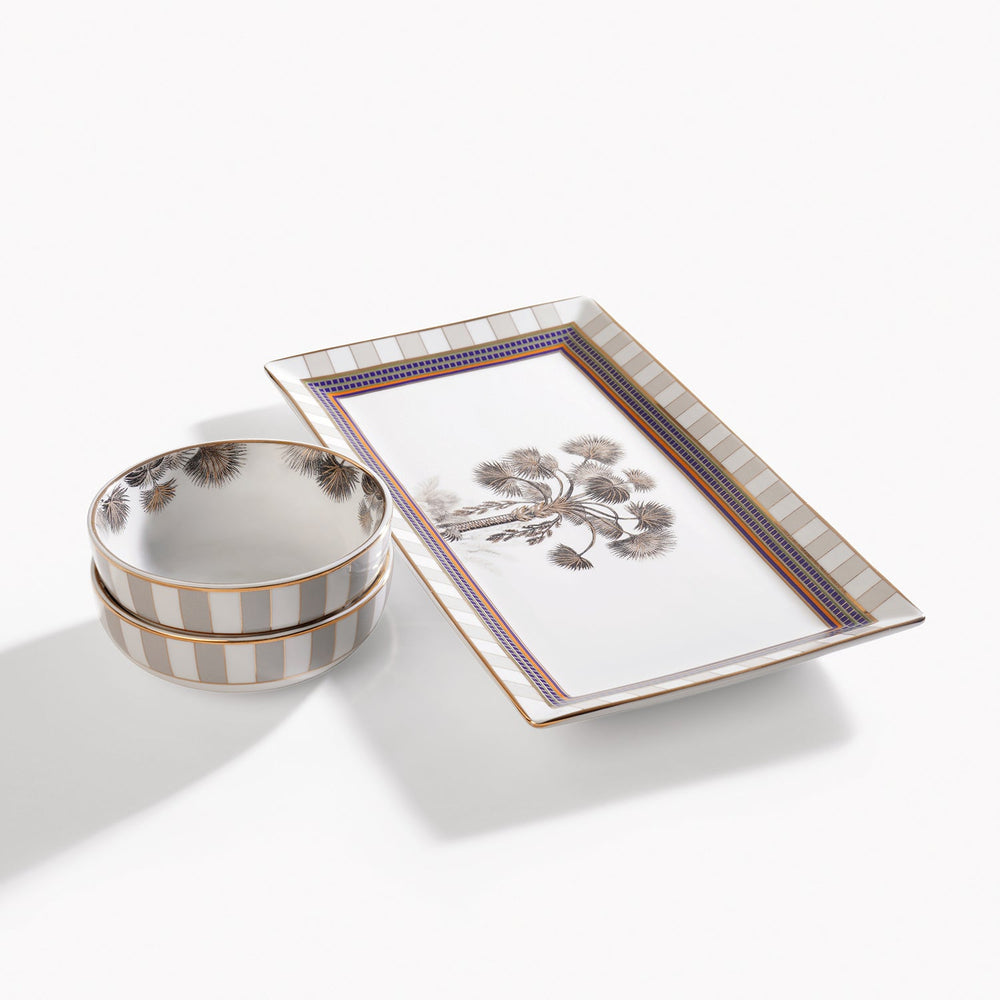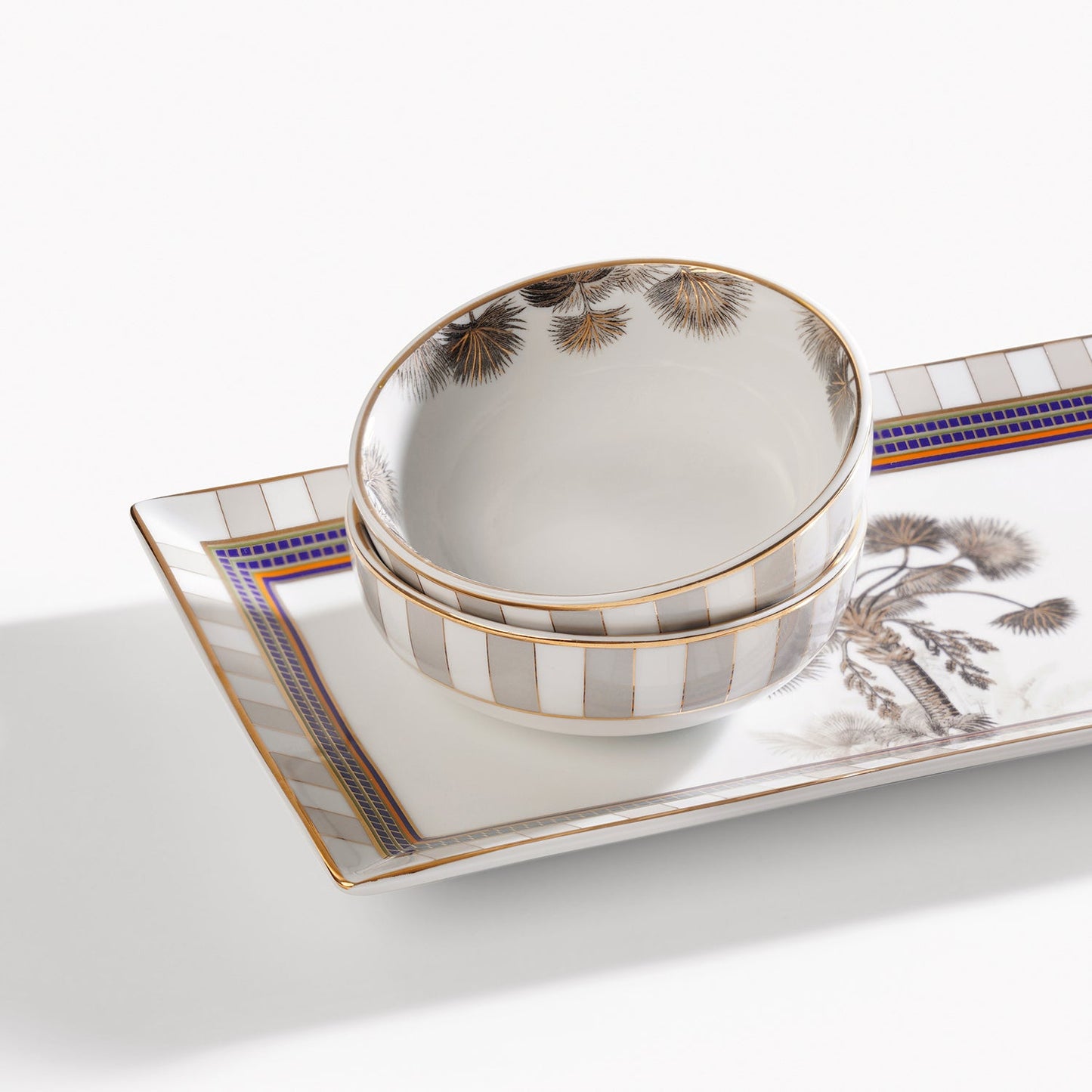 Beige & White Palmier Print Rectangular Porcelain Tray with Bowls
