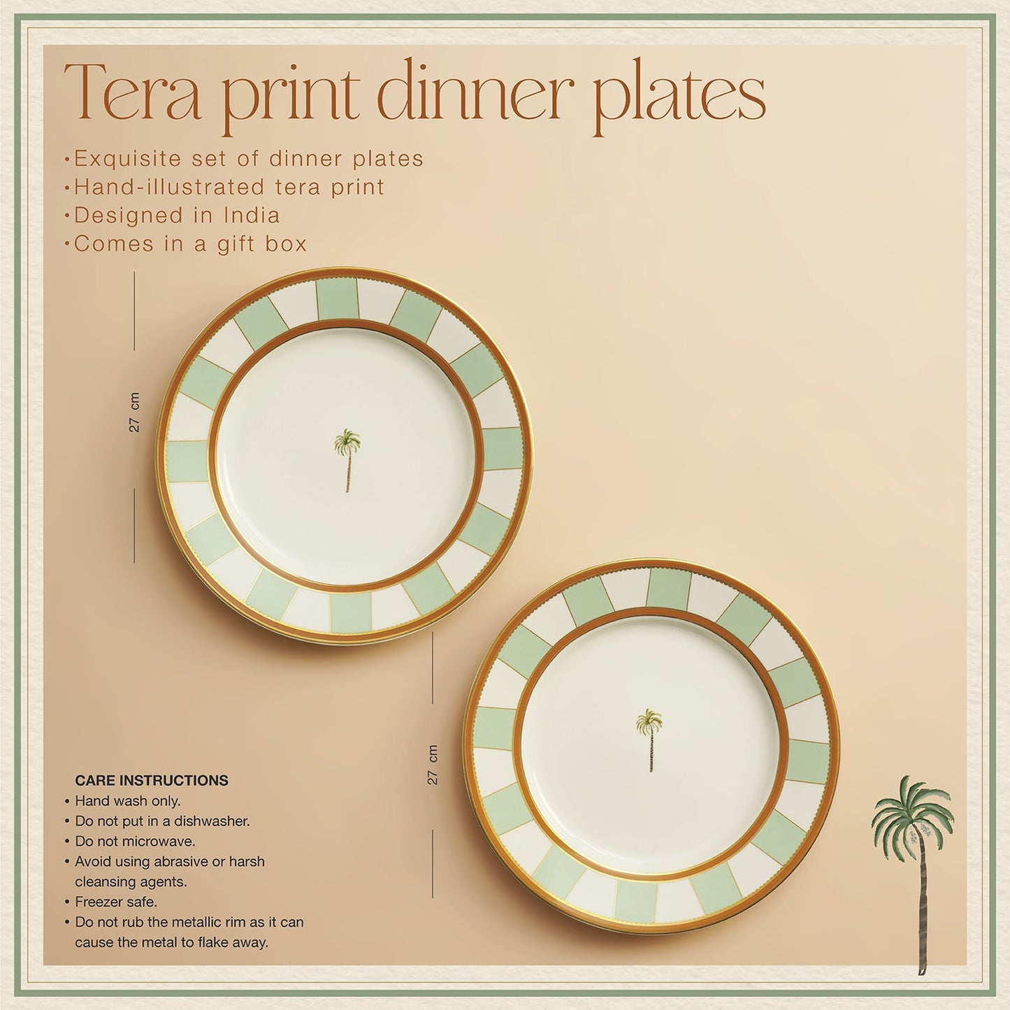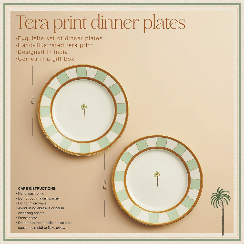 Set of 2 Orange & Mint Tera Print Porcelain Dinner Plates