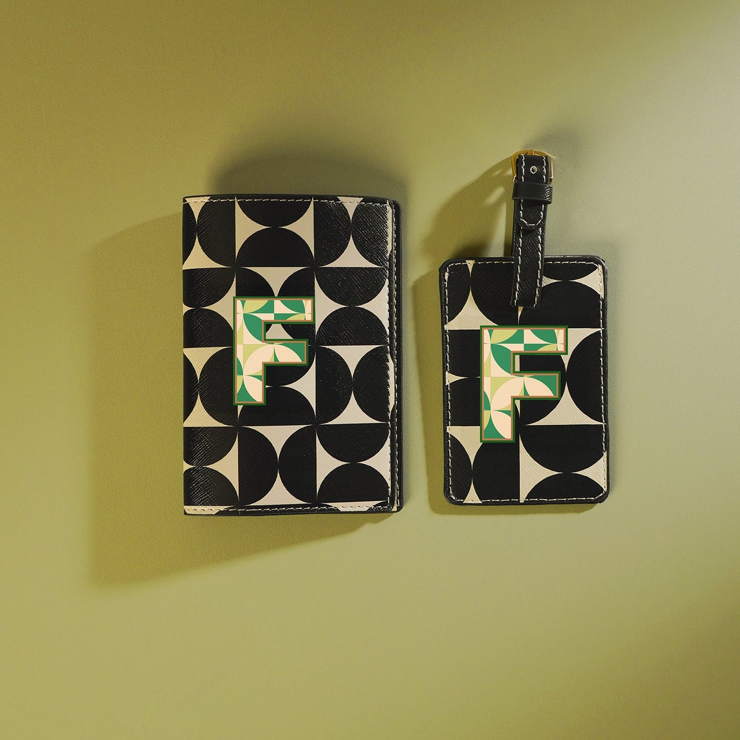 Set of 2 Black & Green F Passport Holder & Luggage Tag