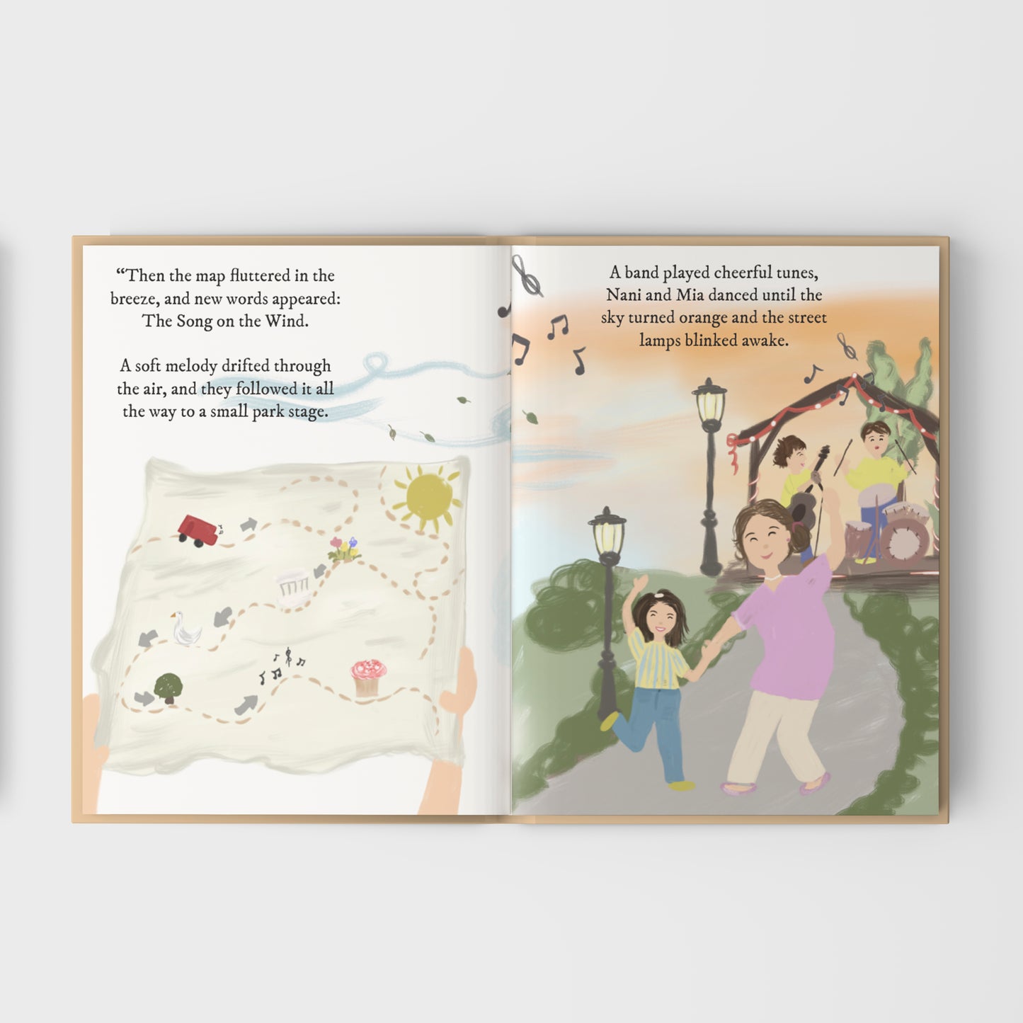 The story follows your child and their grandmother as they set off on a magical day, guided by a special Map of Wonders. Together, they explore, laugh, and make memories in this heartwarming tale.