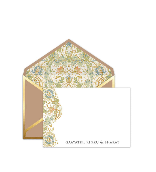 Sylvan set of notecards, complemented with nice pattern. This Beautiful set of boxed notecards is the perfect accompaniment to your gift. This design features a a beautiful pattern complimented with a brown envelope. The envelopes are detailed with gold foil.