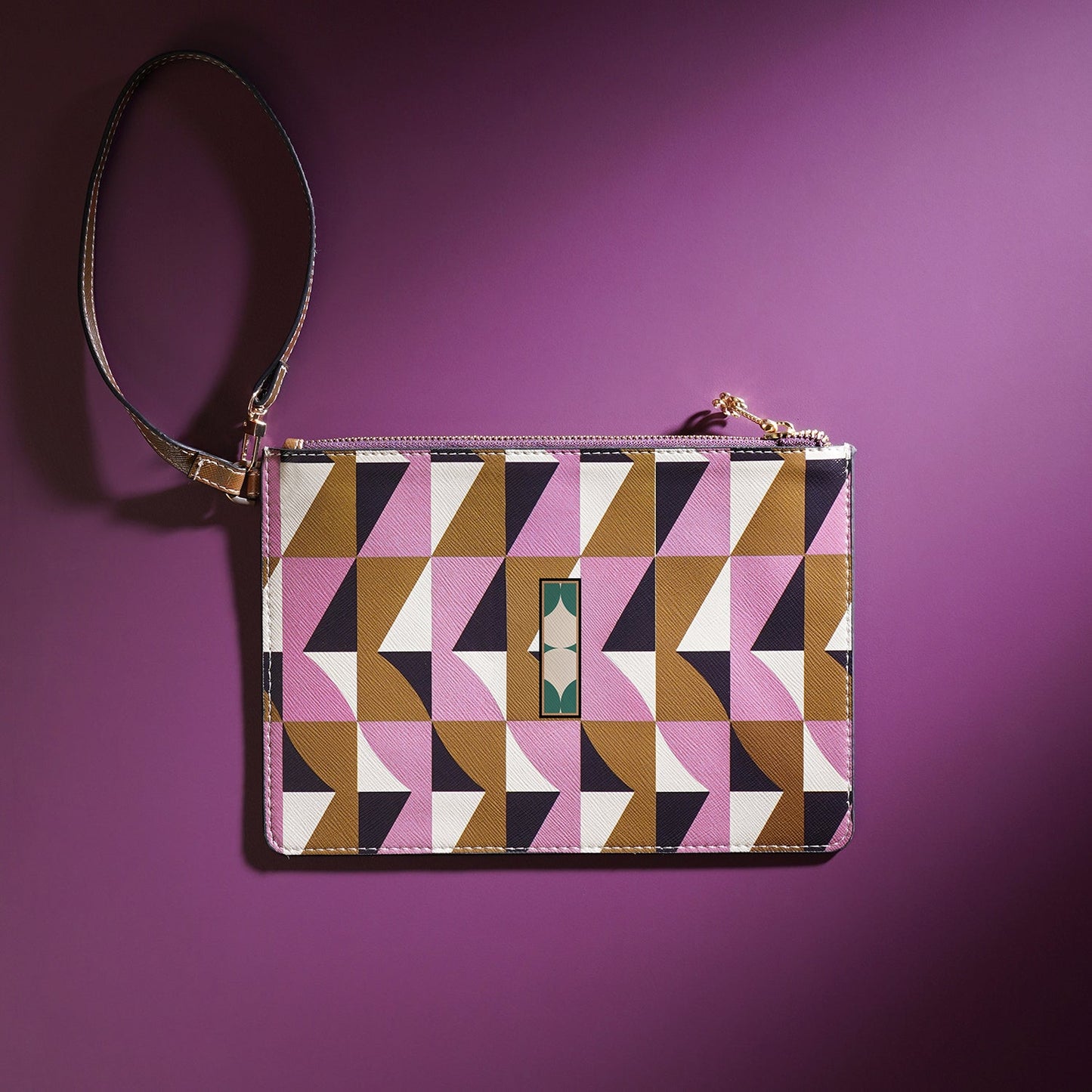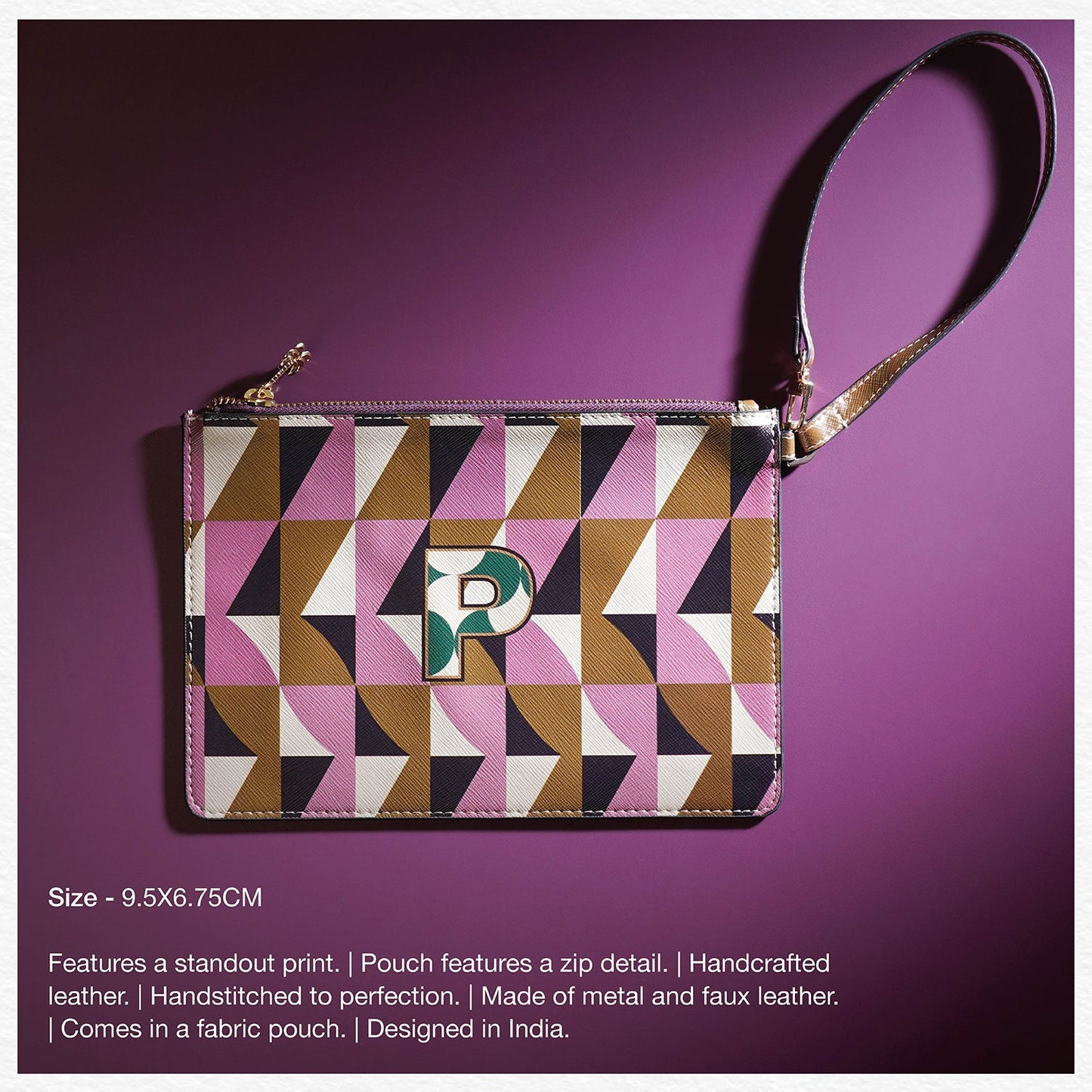 Pouch features a zip detail.