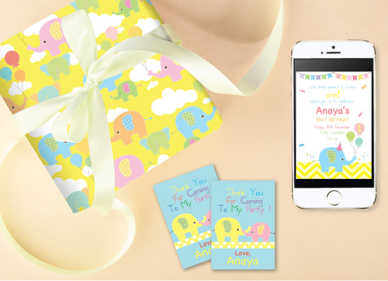 Shop this bundle to get an E-invite, A roll of wrapping paper with 20 sheets, and 40 return gift tags!