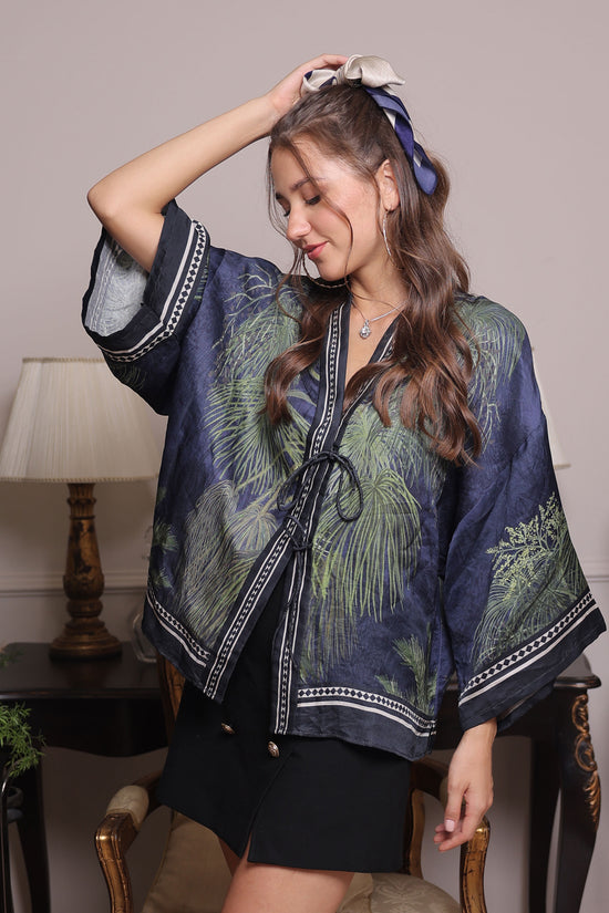 Meet the Tie-Up Kimono Shirt, your versatile wardrobe essential. Crafted from luxurious linen satin, this oversized piece features elegant flared sleeves and a chic tie-up design. Perfect for dressing up or down, it seamlessly transitions from workdays to weekends. Whether paired with tailored pants or casual jeans, this shirt combines comfort and style, making it an effortless choice for any occasion.