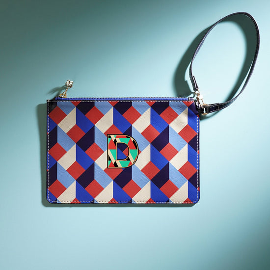 Sleek and versatile, the blue and peach 'D' flat travel pouch keeps your essentials organized with effortless style. Its bold design and compact form make it the perfect companion for every journey, near or far.