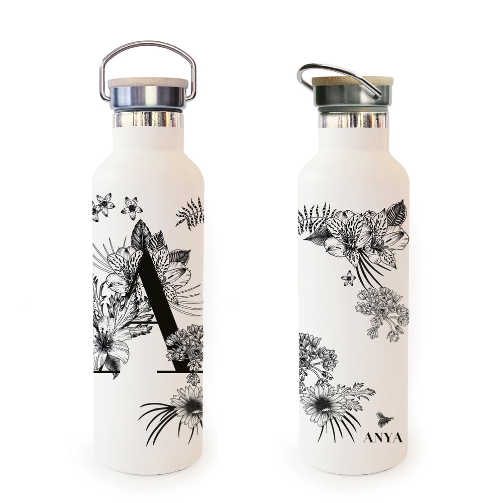 Featuring lovely floral botanical! Off to the gym or a shopping trip stay hydrated, Get eco friendly and use your very own stainless steel personalised bottles!