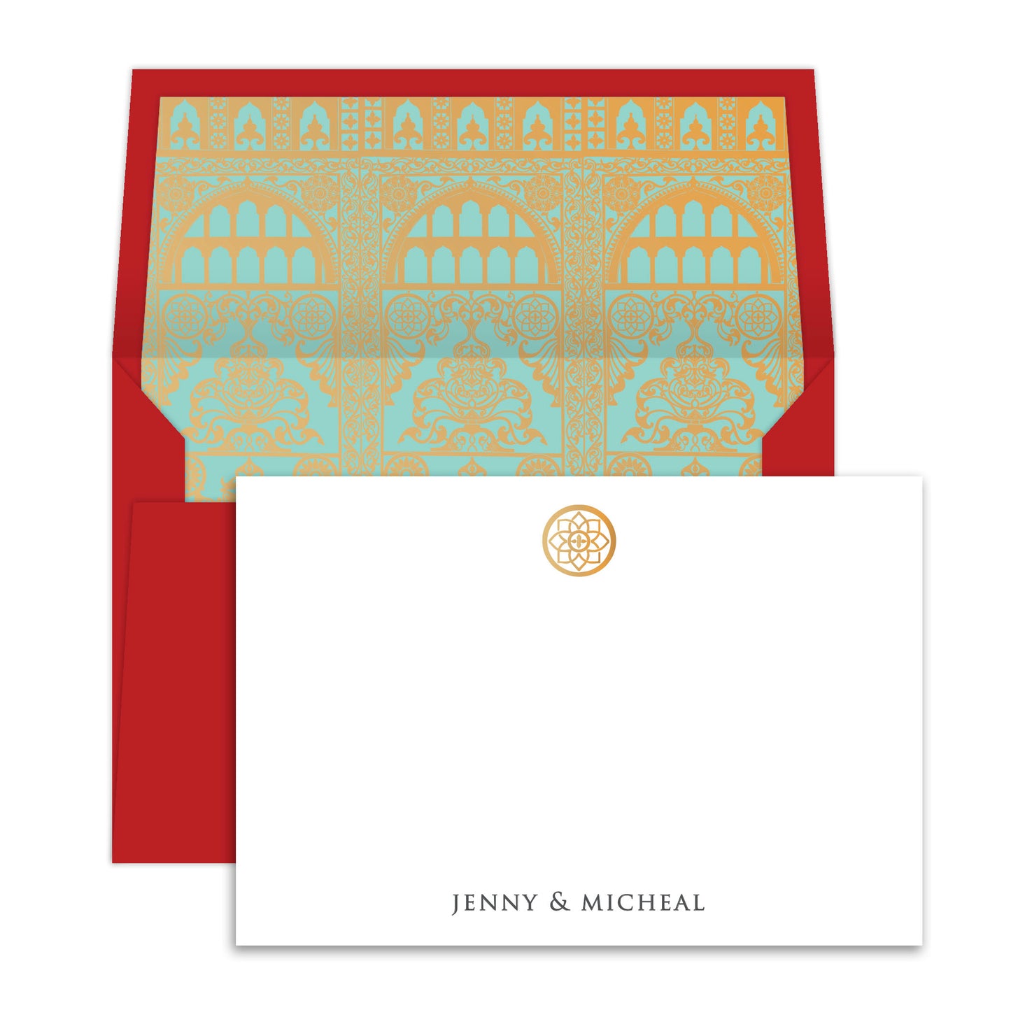 Heritage is inspired by Indian architecture, a stationery set that is sure to make a statement. Red Envelope with lining. Use them to send a greeting or just to say thank you.