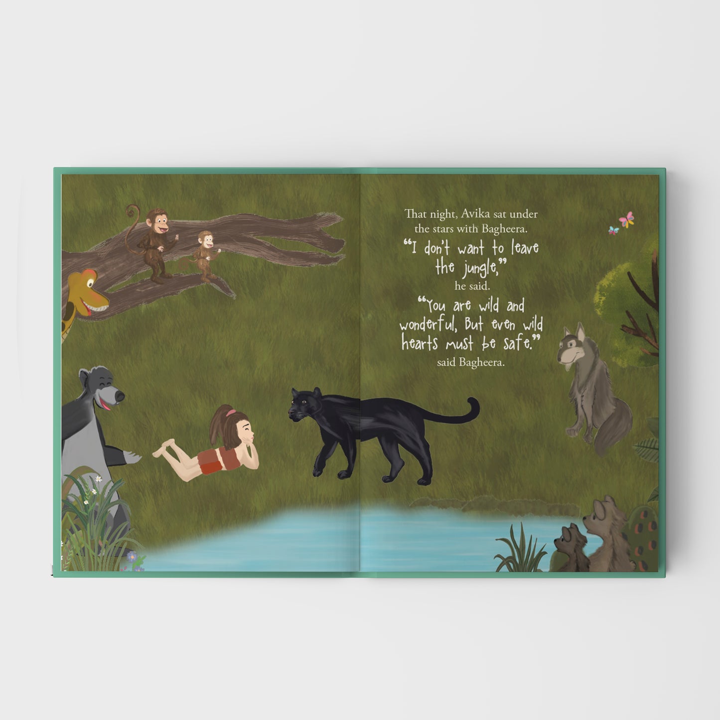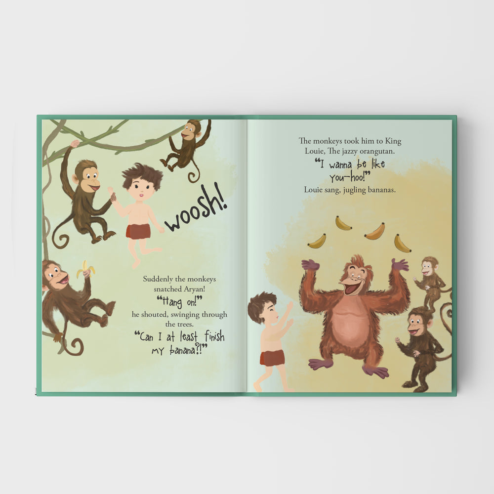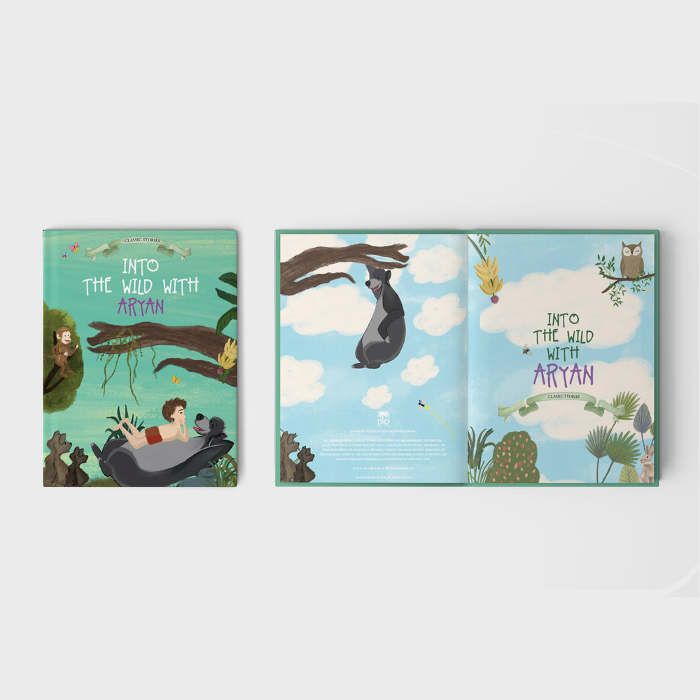 Into The Wild Personalised Storybook inspired by The Jungle Book is beautifully illustrated and personalised with your child's name. The story follows your child's adventure in Jungle.
