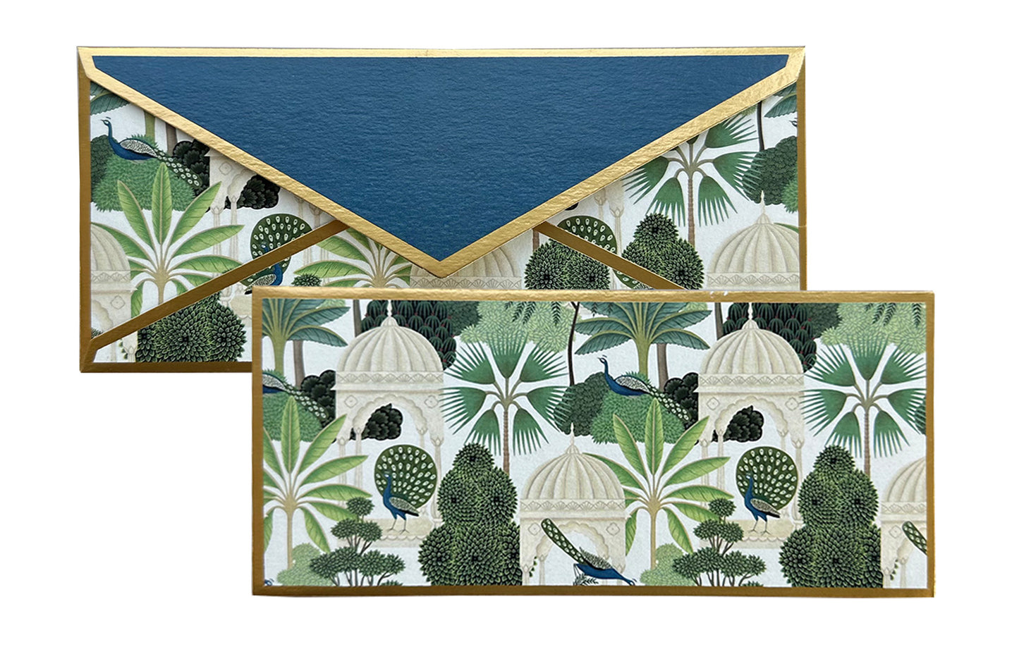 A beautiful pattern. The gift envelope is detailed with gold. Ideal for gifting money or a gift card. Personalise it with your name.