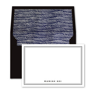 Midnight personalised set of boxed notecards paired with black envelopes. These can be used to send a greeting or as thank you, and even make a great gift.