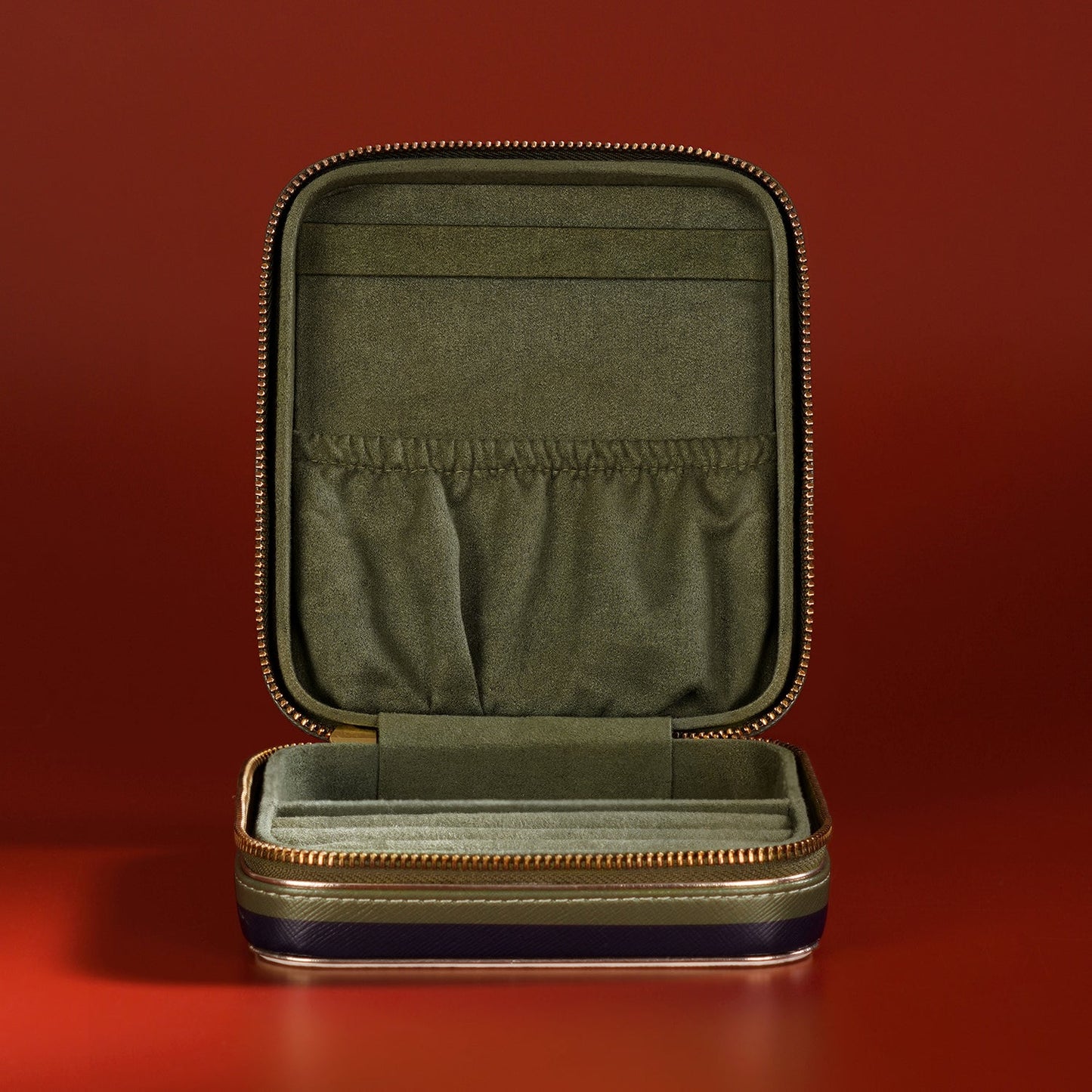Chic and compact, this orange and pink 'L' faux leather jewellery box keeps your treasures safe and tangle-free on the go. Its bold design and secure structure make it the perfect companion for stylish, organized travel.