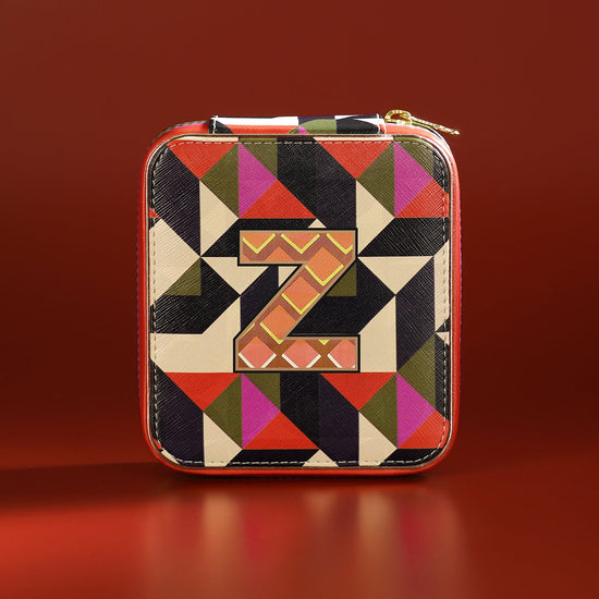 Chic and compact, this orange and pink 'Z' faux leather jewellery box keeps your treasures safe and tangle-free on the go. Its bold design and secure structure make it the perfect companion for stylish, organized travel.
