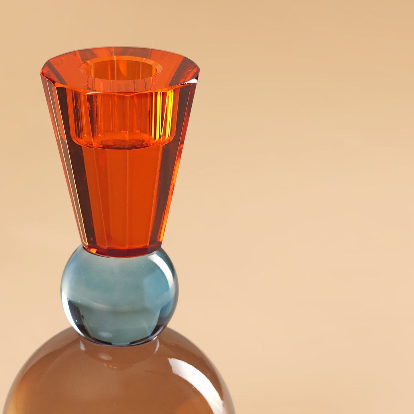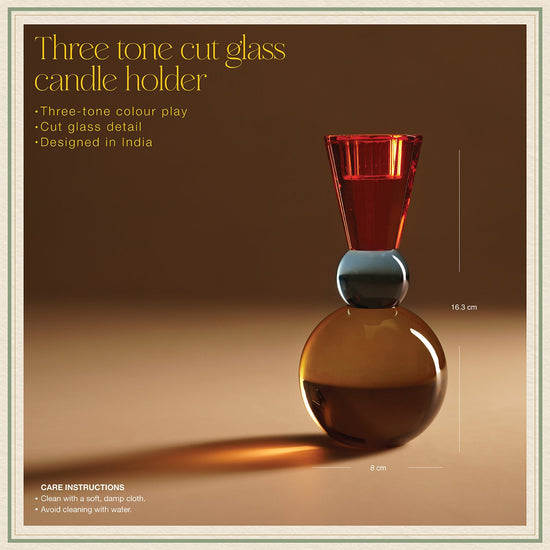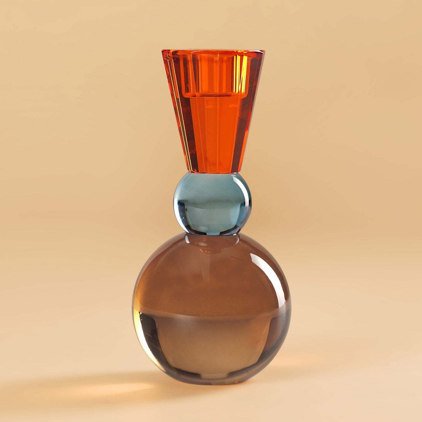 Striking, sharp, and playful, this candle holder offers a stacked silhouette of shapes for an eye-catching centerpiece. Perfect as a standalone accent or grouped for a striking display.