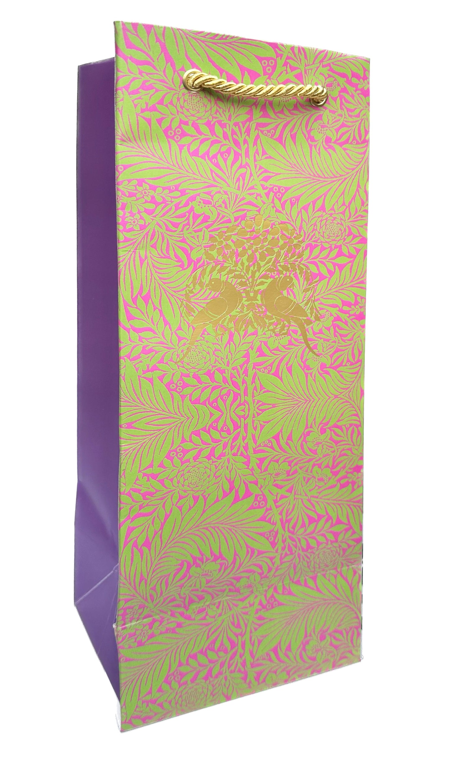 These bags are ideal for a variety of occasions such as birthdays and dinner party gifts. The matt laminated bottle bag is made from top quality 190gsm art paper with reinforced handles and base. Designed to carry up to a standard bottle. The bag comes with a gift tag for you to write your message.Size 13.5"x5"x 4.5"