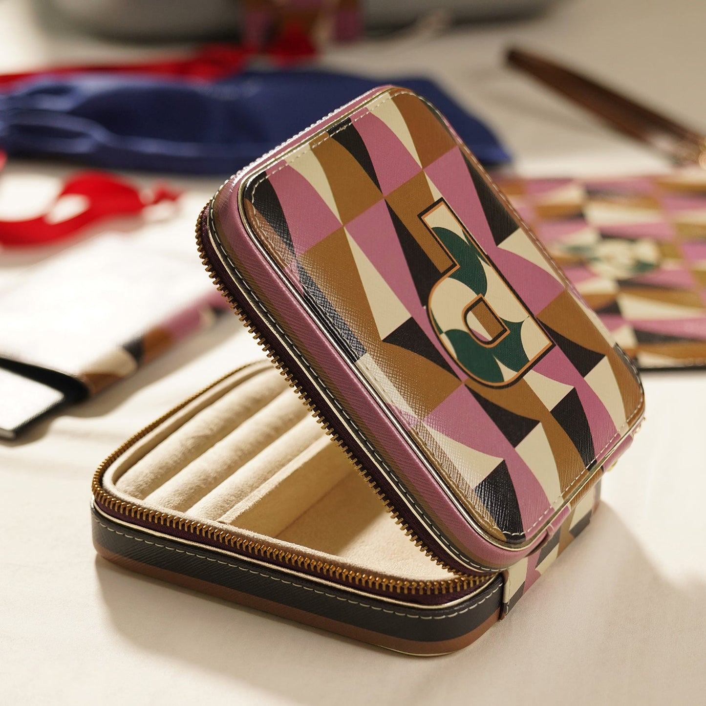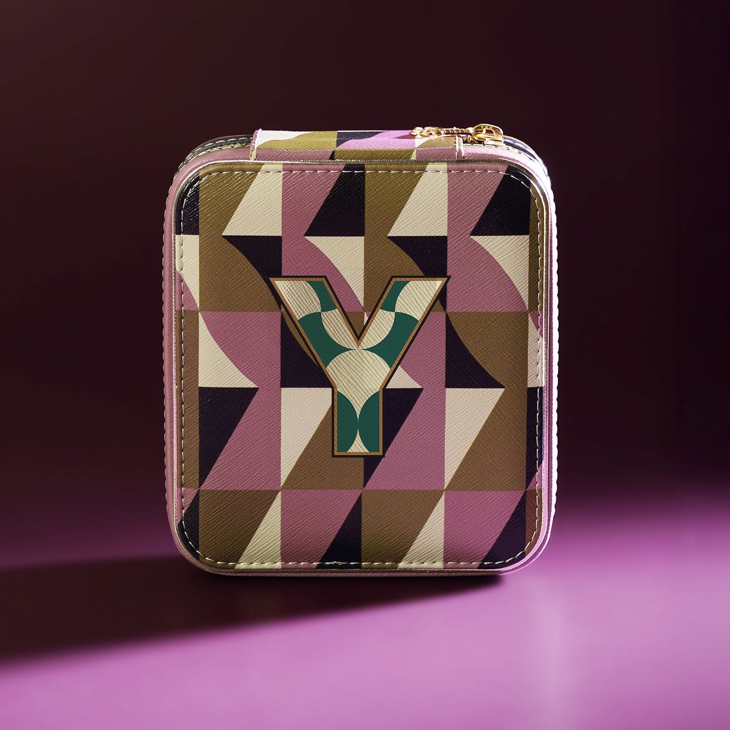 Chic and compact, this pink and green 'Y' faux leather jewellery box keeps your treasures safe and tangle-free on the go. Its bold design and secure structure make it the perfect companion for stylish, organized travel.