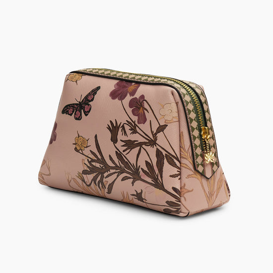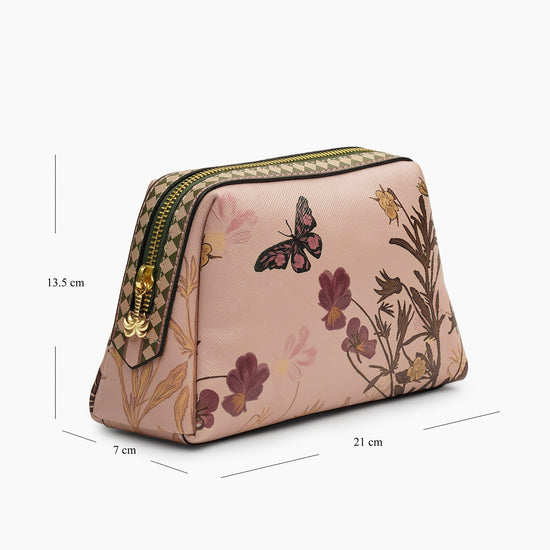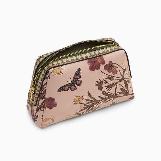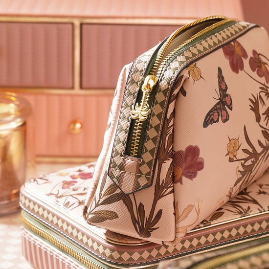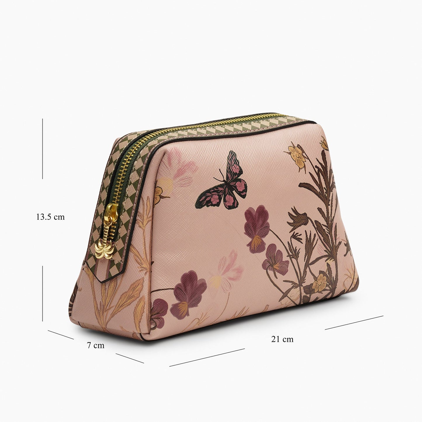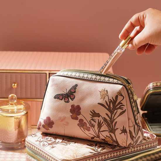 This pleasing faux leather vanity pouch is the perfect on-the-go storage for all your travel and makeup essentials.