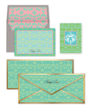 Complete stationery set, includes 10 notecards with envelopes, 10 gift tags and 5 gift envelopes.