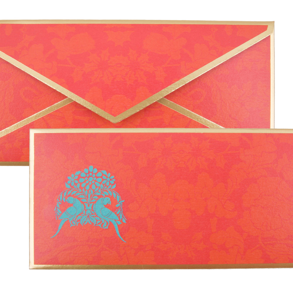 Royal Parakeet Box set in complimentary shades of blue and red. Floral pattern combined with a motif.