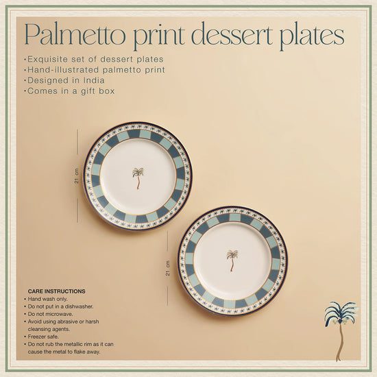 Set of 2 Blue Palmetto Print Porcelain Dessert Plates