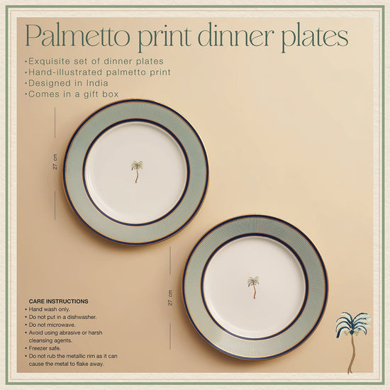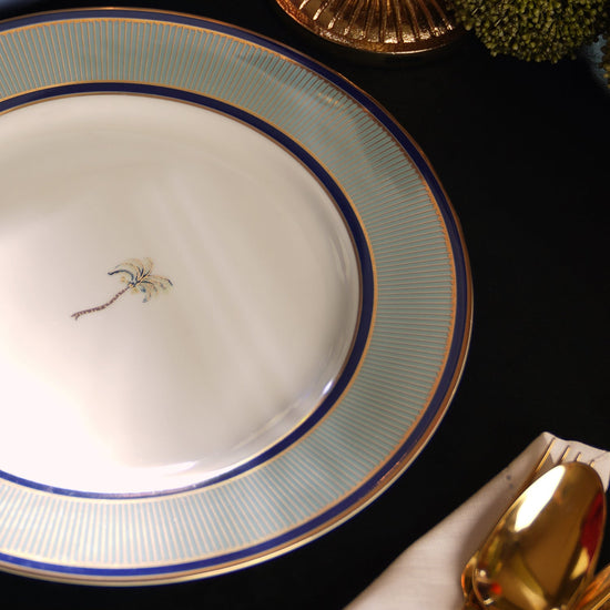 Set the table with timeless style with these blue porcelain dinner plates. Host-approved, these palmetto dining plates are sure to set the mood for your dinner party. Thoughtfully designed as a part of our limited edition, Las Palmas collection, these plates are perfect for a festive, host-approved party atmosphere. They feature a sweet yet striking print and a glazed, glossy shine for an extra touch of brilliance.