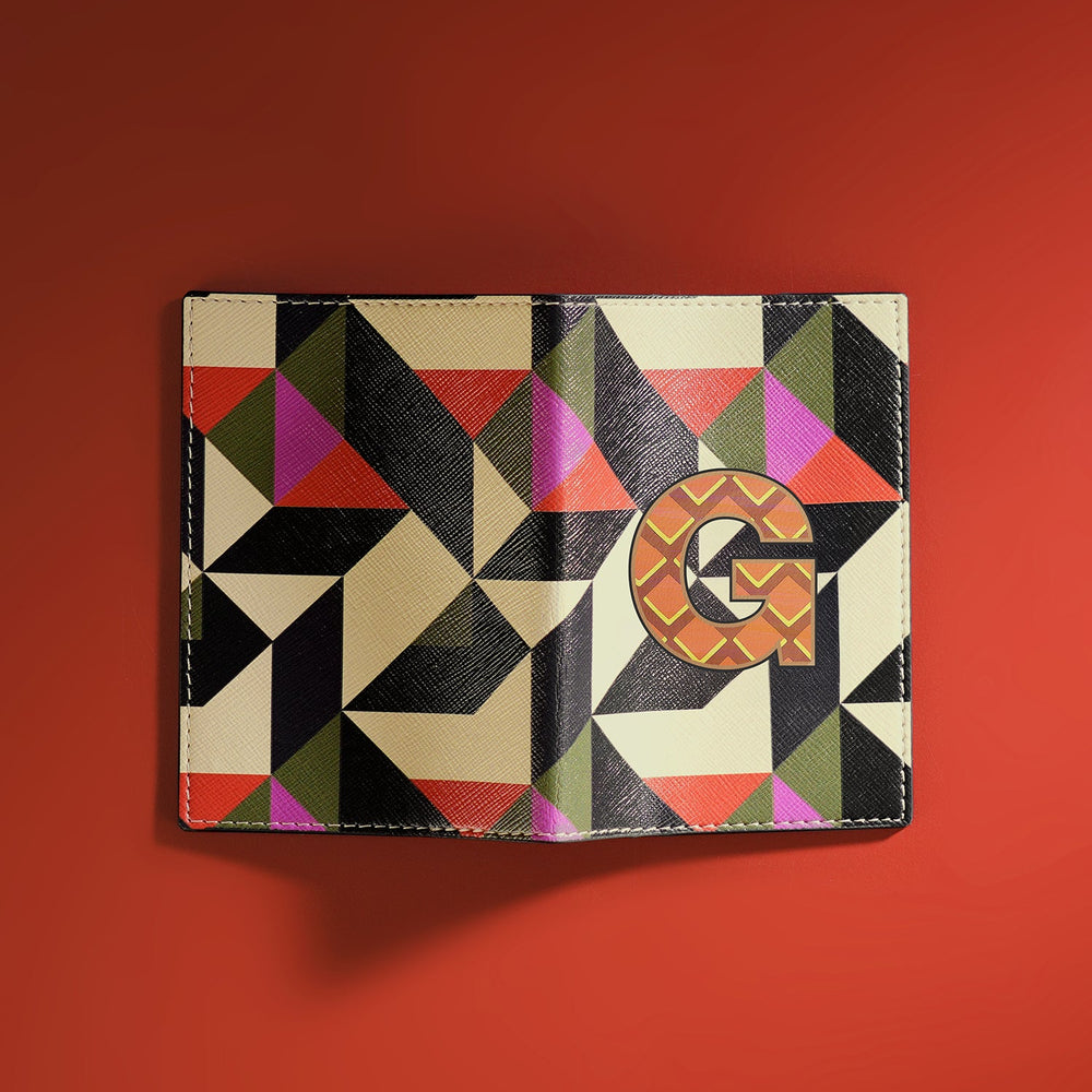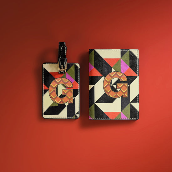Meet your ultimate travel companion: a passport holder and luggage tag that blends bold style with personal flair. The striking orange and pink geometric backdrop, paired with a vibrant 'G', makes it not just a travel essential but a statement of identity and adventure.