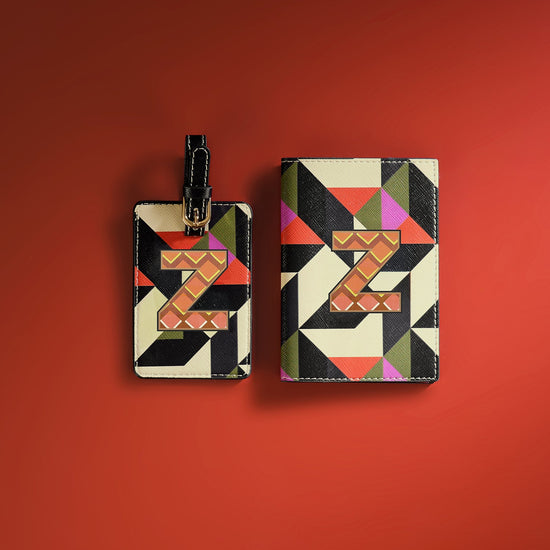 Meet your ultimate travel companion: a passport holder and luggage tag that blends bold style with personal flair. The striking orange and pink geometric backdrop, paired with a vibrant 'Z', makes it not just a travel essential but a statement of identity and adventure.