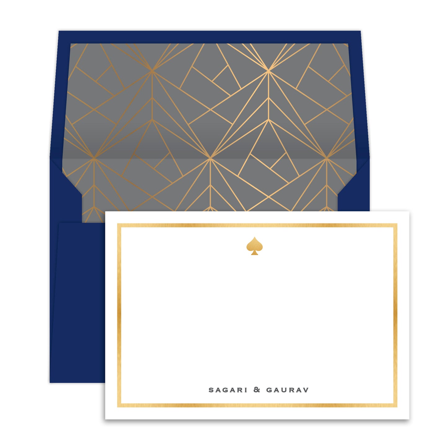 Spade is offest with a geometric pattern. A stationery set that is perfect for the festive season. Blue Envelope with lining. Use them to send a greeting or just to say thank you.