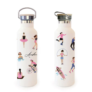 Custom illustrated sporty chic bottle! Off to the gym or a shopping trip stay hydrated, Get eco friendly and use your very own stainless steel personalised bottles! A little extra motivation to get out the door!