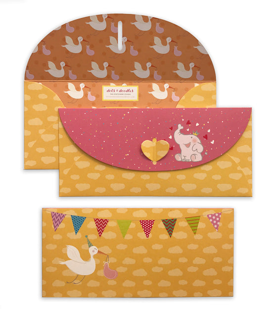 Regular price Rs. 1,349.00 INRAdorable kids gift envelopes, perfect for any occasion. Use it for a gift card or cash. Printed envelope, colorful lining inside. The envelope self locks, with a cute heart shape lock.