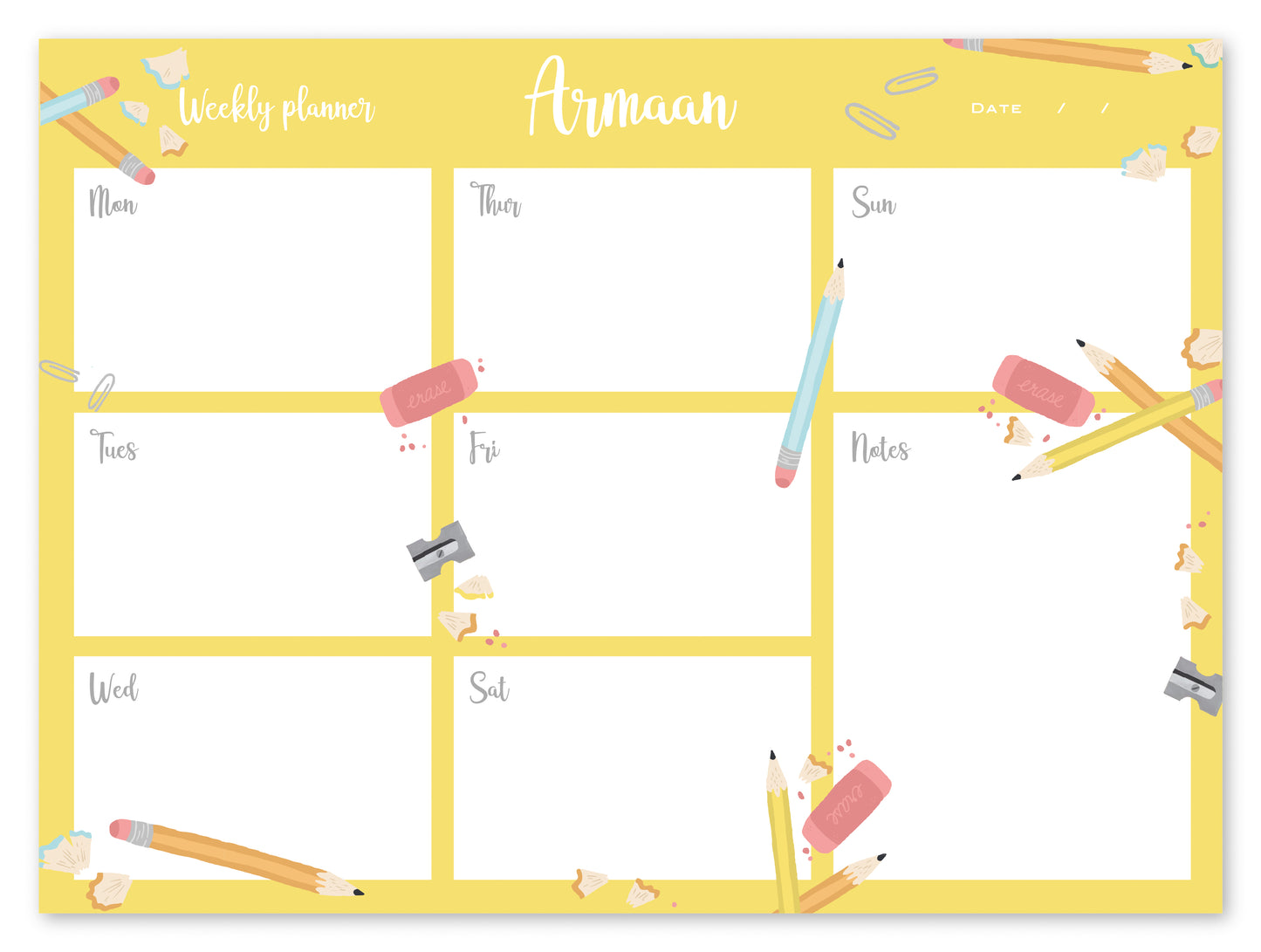 Personalised Weekly Planner. Write down a variety of healthy meals and snacks, see how delicious and easy it can be to be fit!